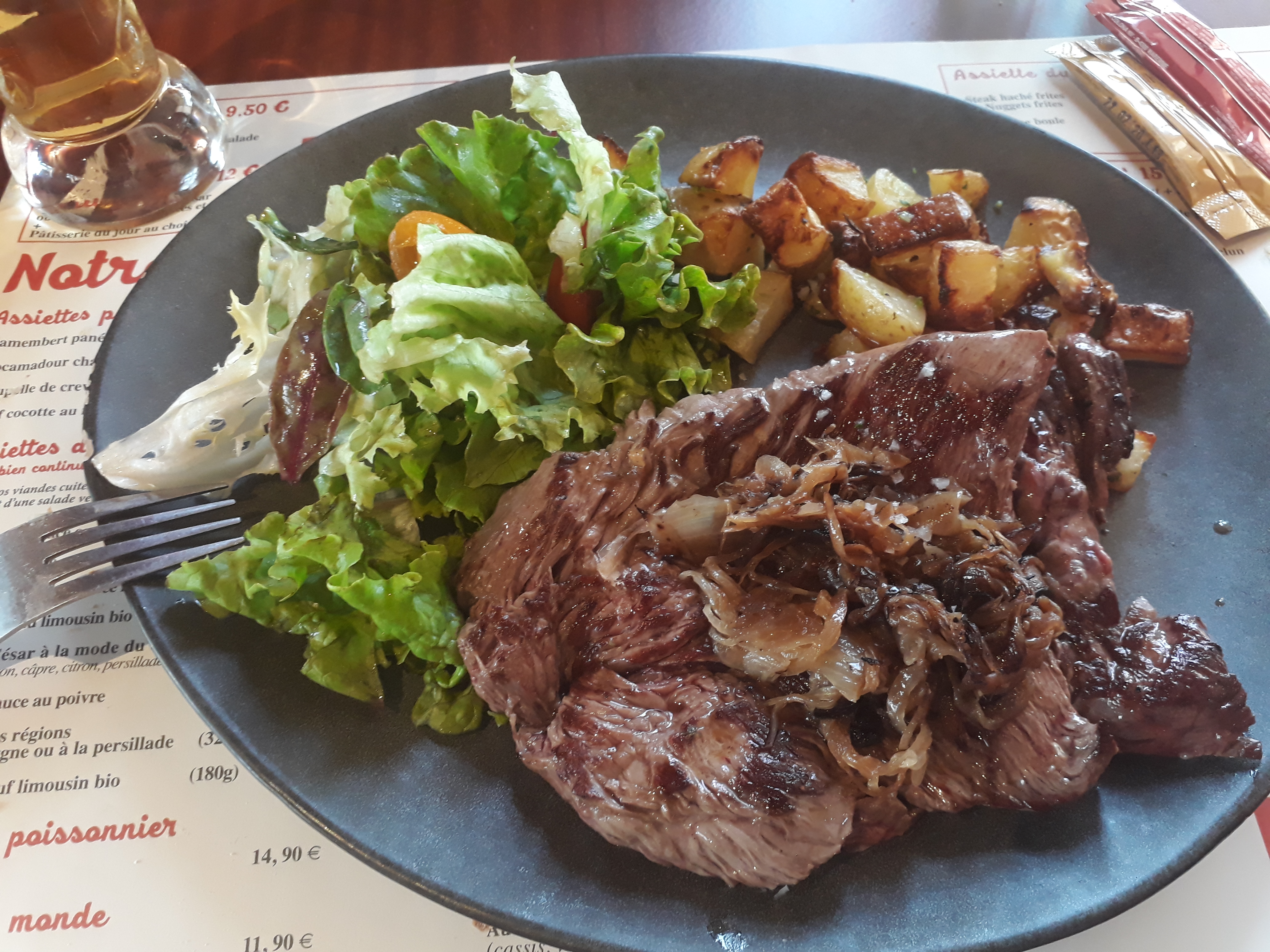 Très bon. La viande était cuite comme nous l'avions demandé. Les frites ça été. Pour moi, juste trop de sel car je n'en mange pas mais pour monsieur ça été. Le panaché de monsieur avait trop de bière. J'avais lu les avis et franchement le mieux est de se faire son propre avis car nous n'avons pas été déçus. Le personnel agréable