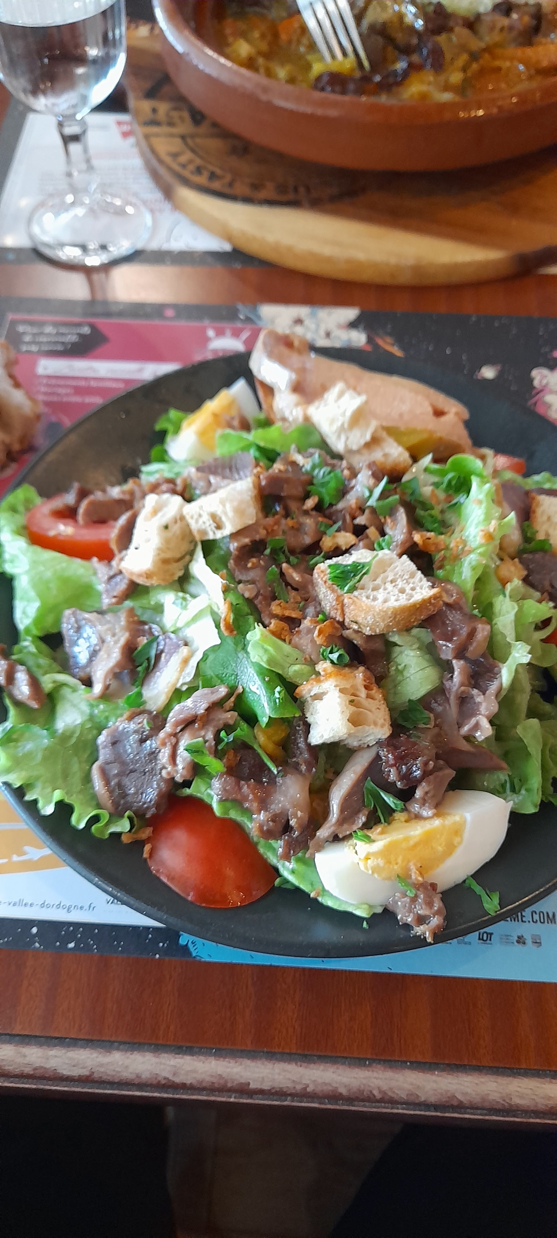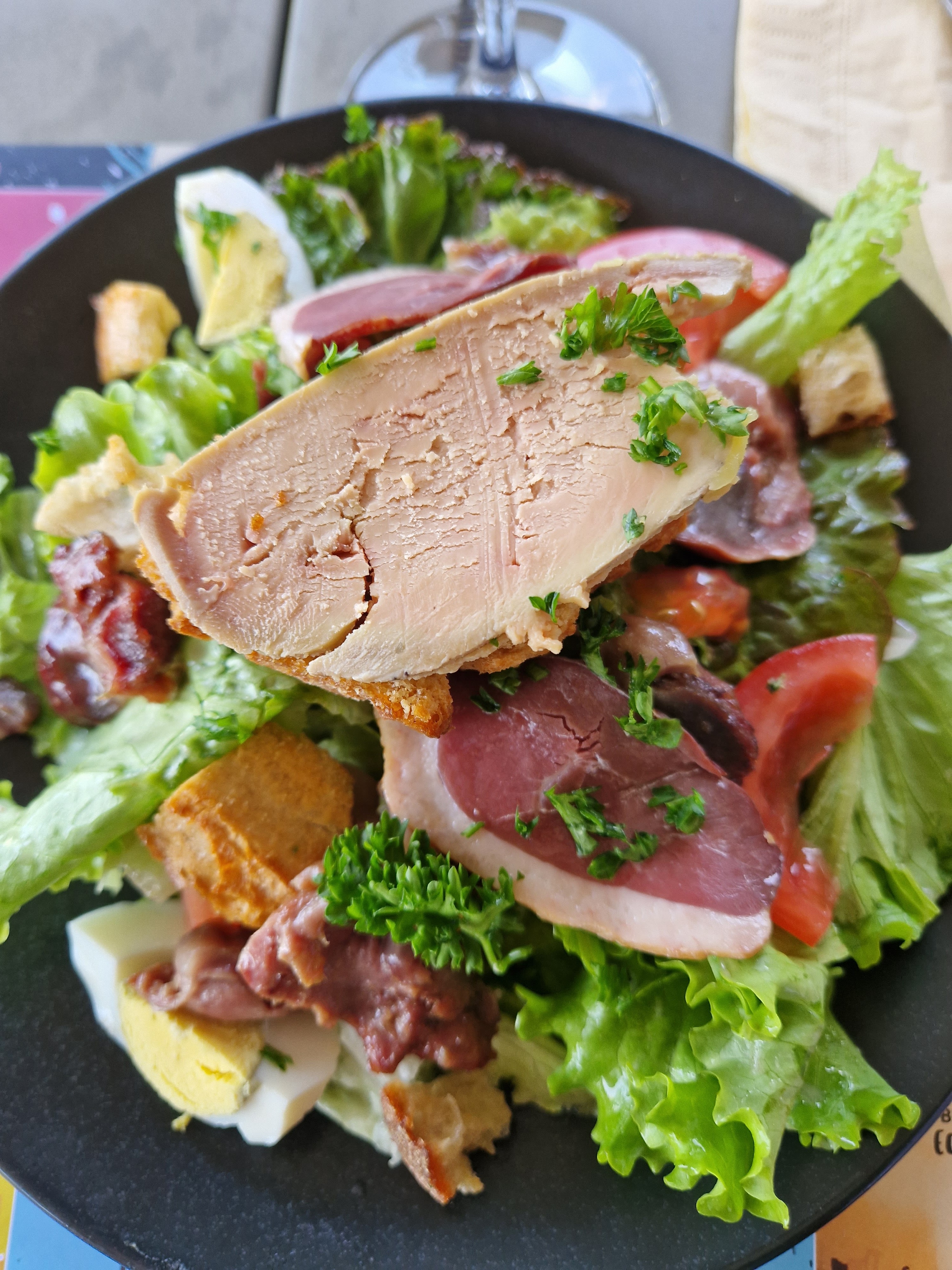 Salade périgourdine et salade cesar très copieuses et goûteuses. Andouillette grillée excellente. Le tout servi avec efficacité et sourire. Nous venons régulièrement et ne sommes jamais decus. . À bientôt.
