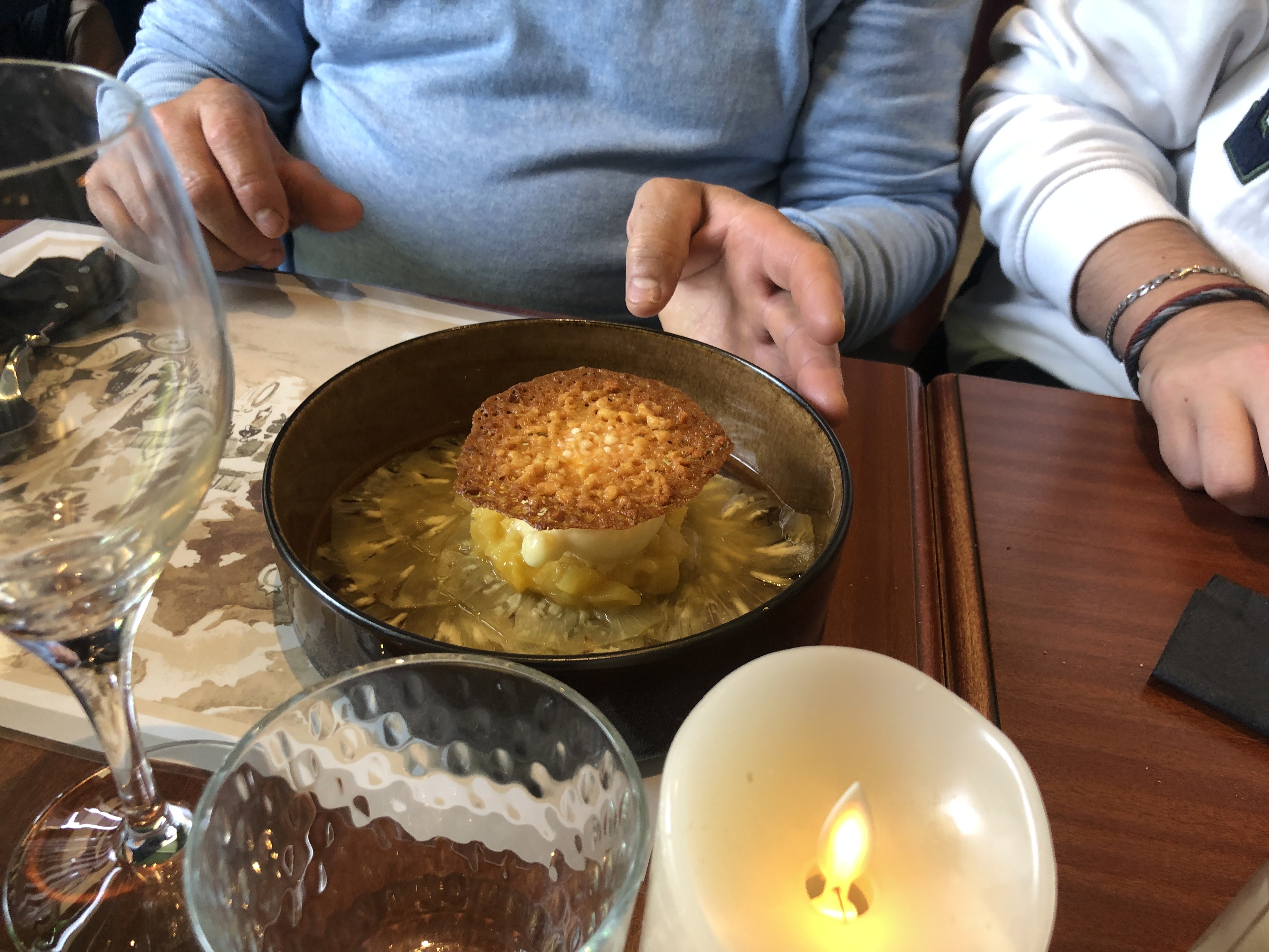 Bon, mais rapport qualité prix non présent. Pour ma part, j’ai pris un riz de veau aux morilles qui a été accompagné de pâtes qui avaient un goût de réchauffées. Le riz quant a lui été bon, mais l’assiette ne vaut pas les 30€ paye. Idem pour la personne qui m’accompagne qui a pris une noix d’entrecôte rempli de nerf accompagné de salade en sachet et de frites. Dommage car décor sympathique et serveur accueillant.