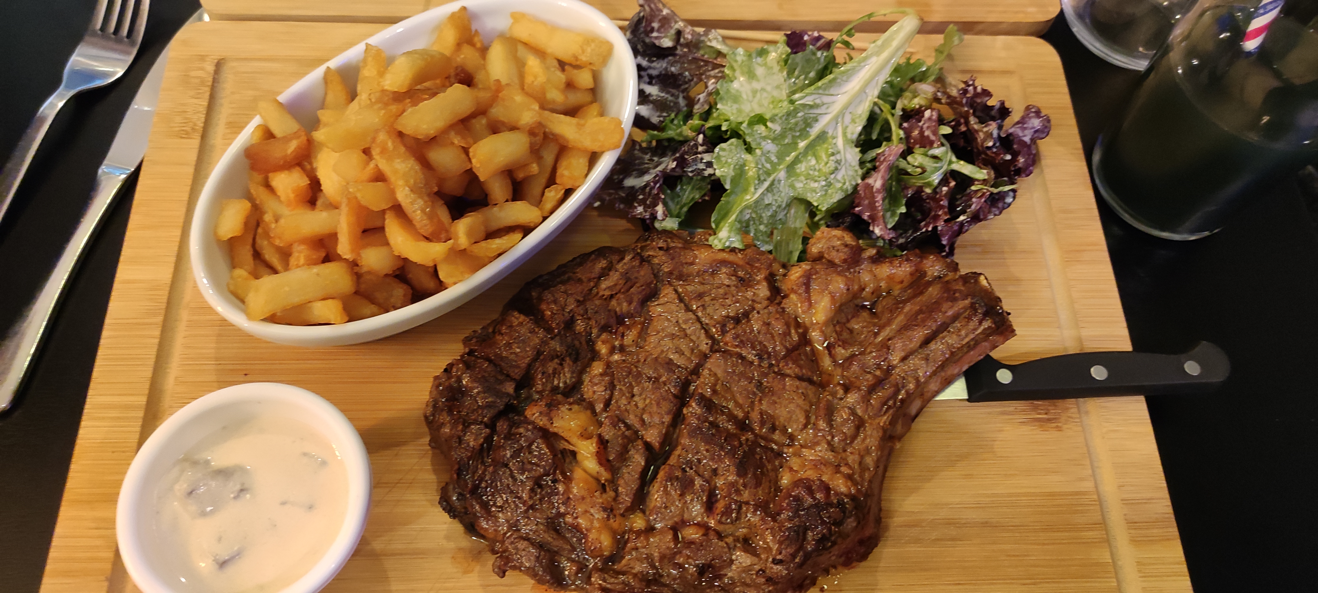 Bonne petite brasserie, j'ai été agréablement surpris par la qualité de la viande, j'avais pris une côte à l'os et c'était plutôt bien cuit, pour ma femme pareil c'est bon! L'accueil était bon, il faut juste savoir que l'endroit et petit donc fort bruyant lors des fortes influence Le dessert sans plus, un simple cookies avec un coeur choco dommage qu'il n'était pas coulant comme j'avais vu sur certaines photos en avis et il manque une touche de chantilly 4/5 reste une très bonne note :) A bientôt et bisous au chef en cuisine :)
