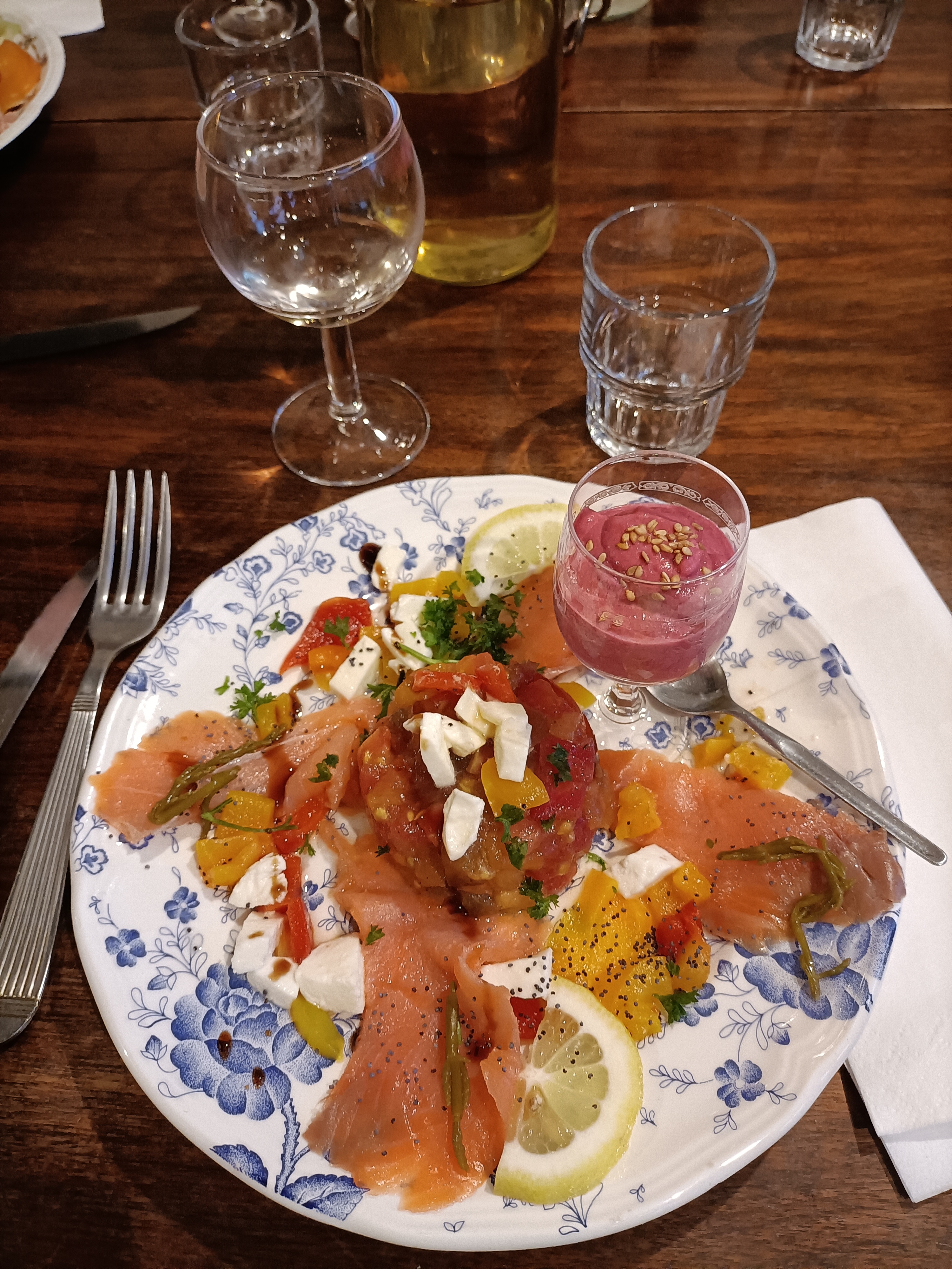 Un endroit unique avec de la bonne nourriture à dîner ! Les plats diffèrent d'un jour à l'autre et il existe un plat local limité, avec un choix uniquement. Assurez-vous donc d’appeler avant et de vérifier ce qui se passe. Nous y étions un dimanche soir (seulement les réservations préalables sont acceptées). La nourriture était fantastique, de bonnes saveurs, des ingrédients locaux bien choisis. Nous avions des salades, du bœuf ou du saumon, du bon vin, des desserts ou une assiette de fromages. Le tout pour un prix juste ! Le service est excellent, une charmante femme (propriétaire ?) sert et cuisine tout. Au moins le soir où nous étions en visite, puisque nous étions également les seuls invités et qu'ils venaient juste d'ouvrir pour nous. Ambiance : de l’extérieur, cela ne ressemble pas à un vrai restaurant, car c’est une vieille maison comme c’est le cas pour tout le village. Mais à l’intérieur, c’est génial et moderne et ils ont aussi des endroits pour s’asseoir à l’extérieur. Dans l'ensemble, absolument recommandable.