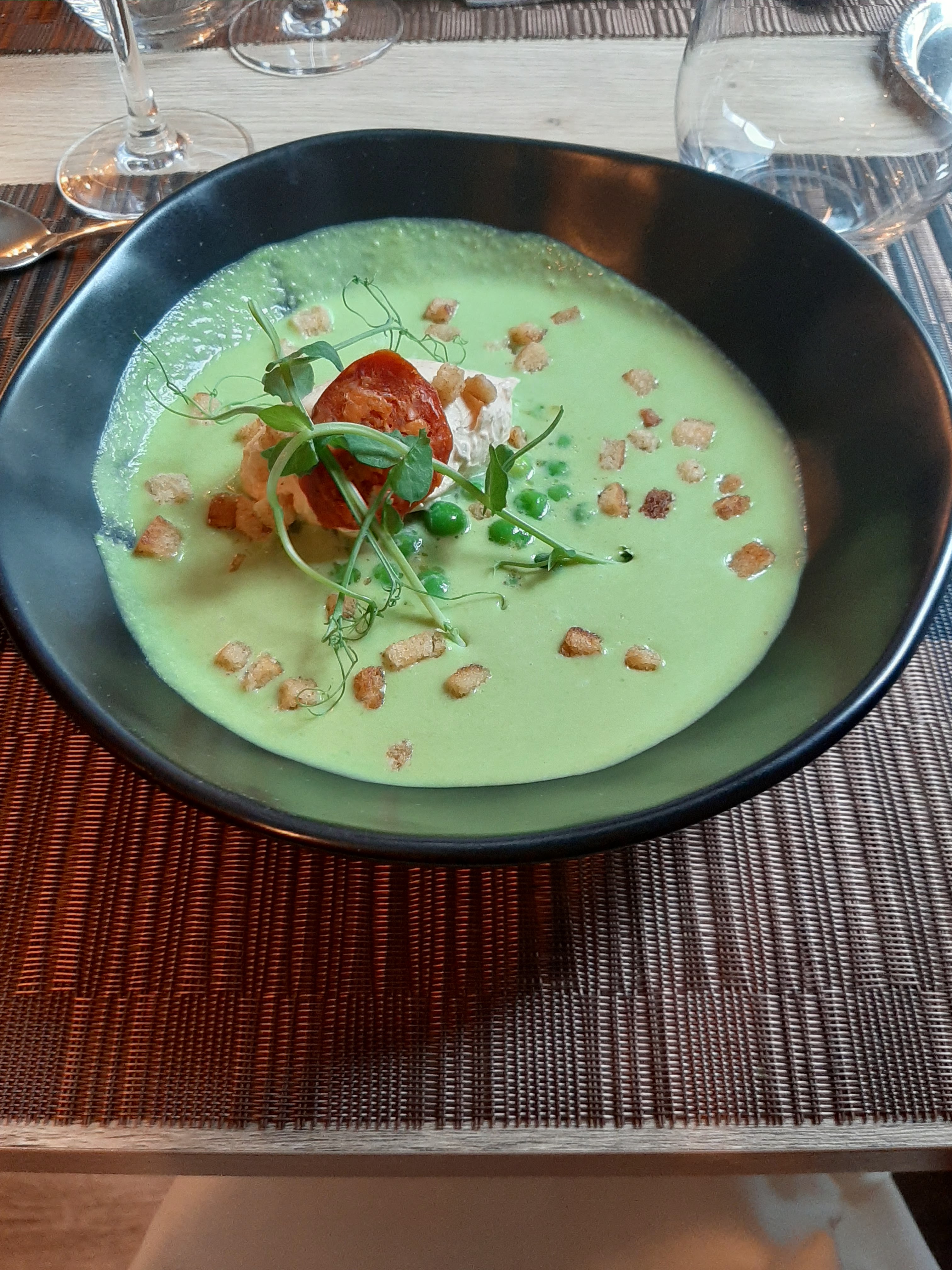 Repas agréable et raffiné. Avons passé un très bon repas en famille. Dommage que nous ayons du être séparé sur deux tables pour cause de covid. Je sais qu'il faut appliquer les règles mais sont elles tjs appliqué en famille et en privé ???