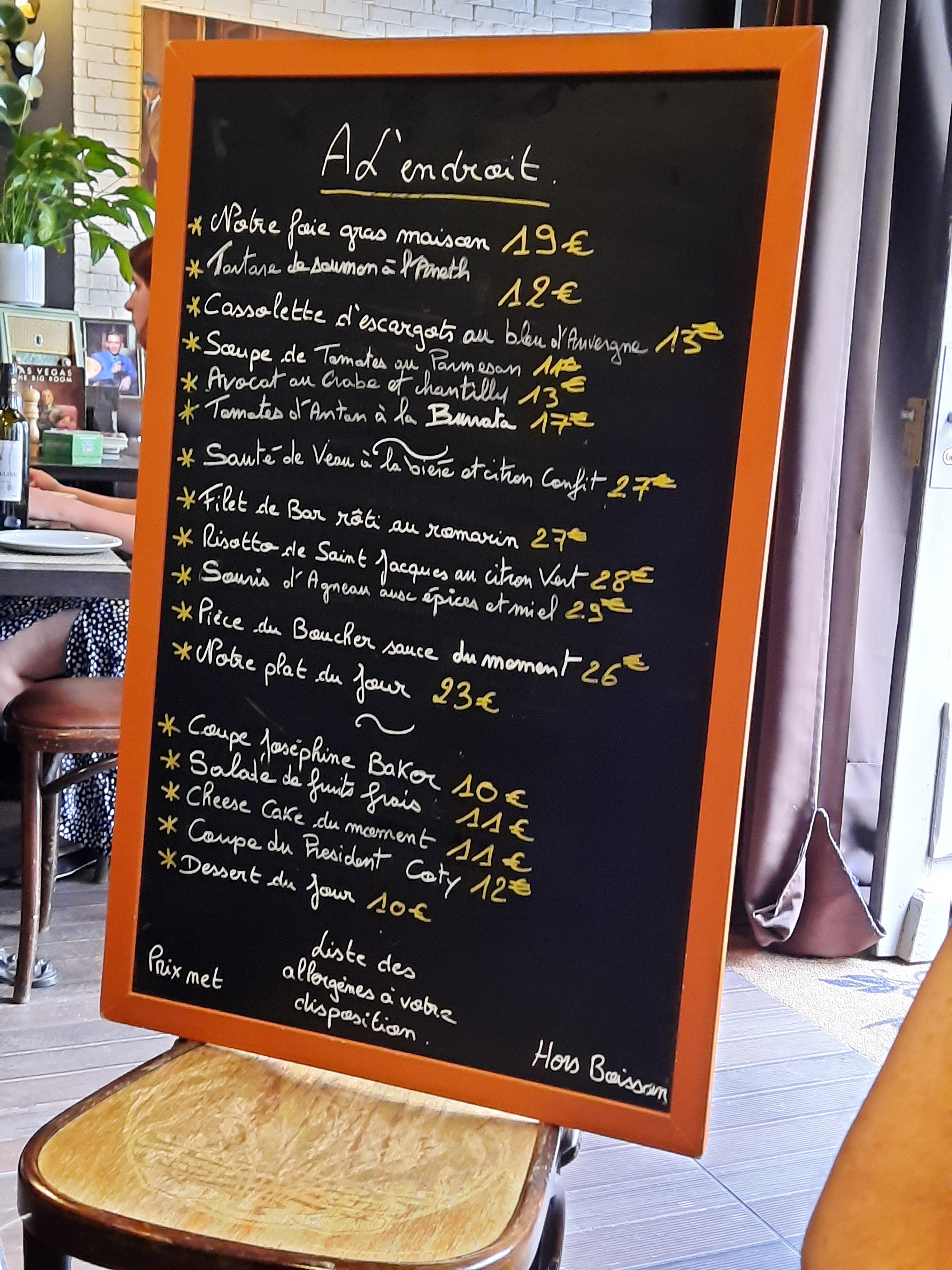 Cadre très sympa avec la terrasse extérieur. Le patron est très sympathique ainsi que le serveur qui aime beaucoup parler anglais 😊. Le repas était bon mais cher par rapport à ce que j’ai pu testé sur paris.