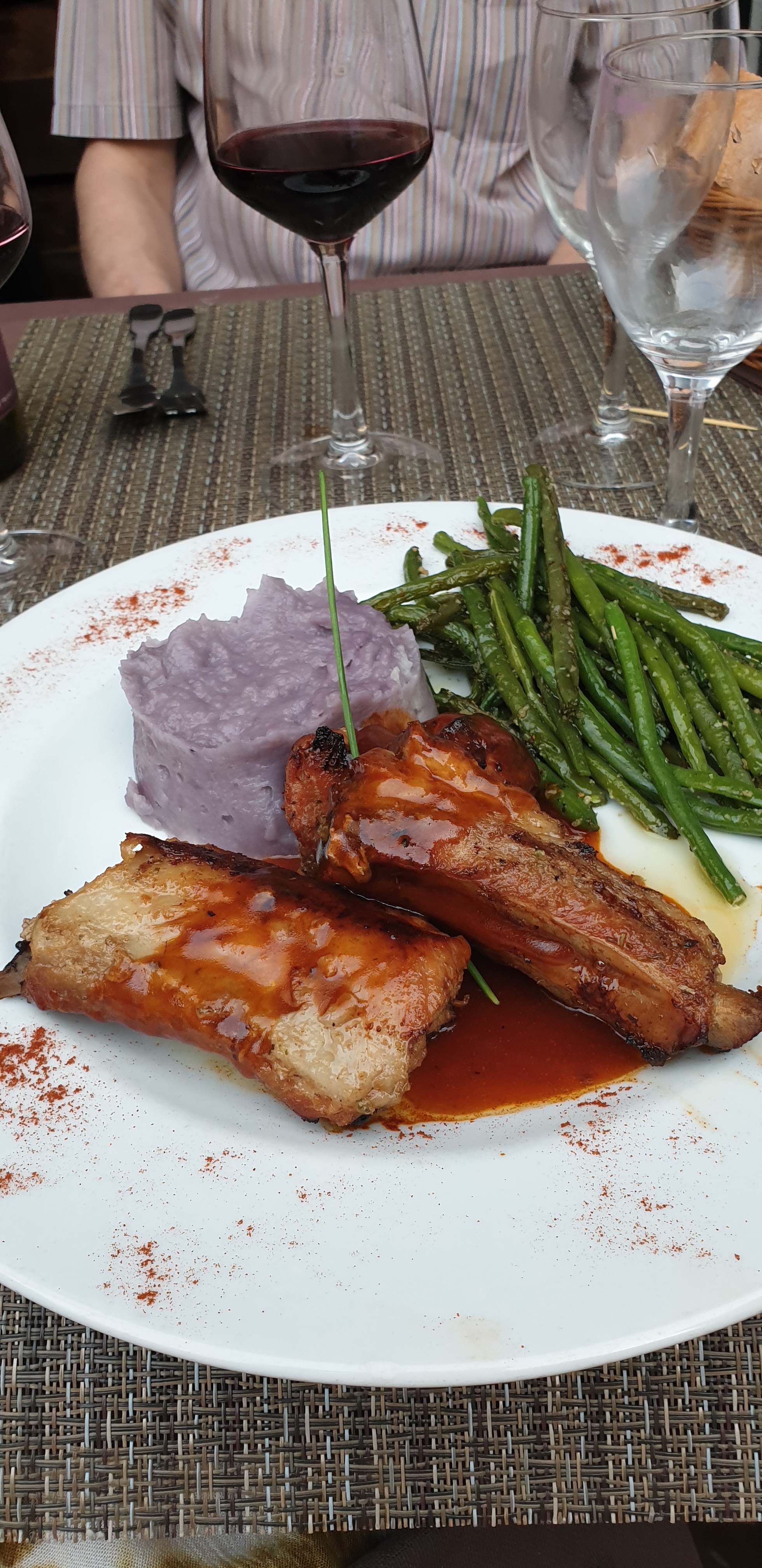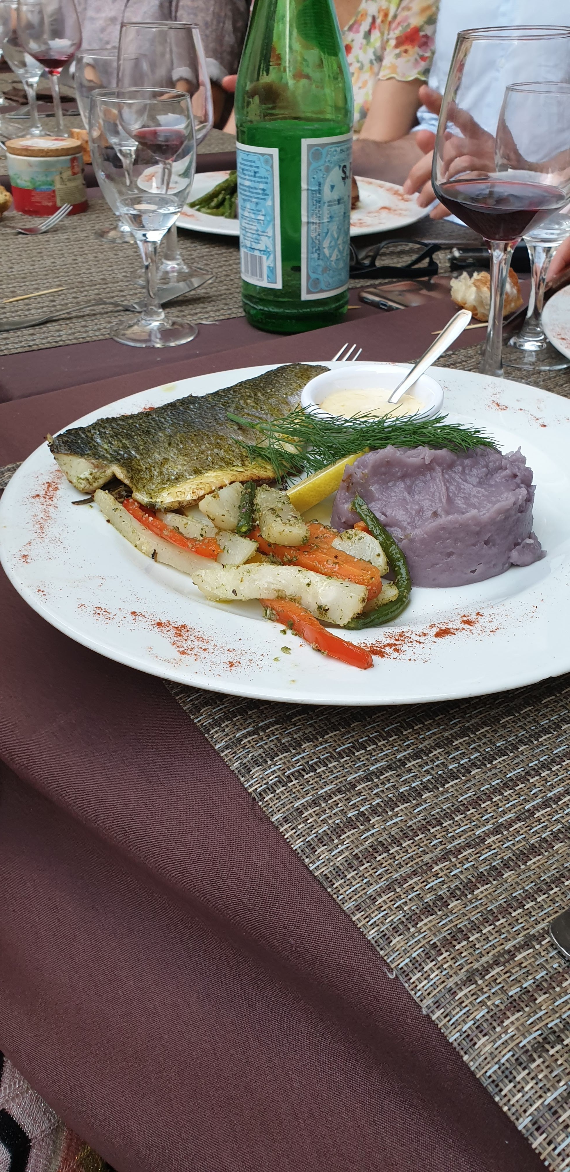 Repas très agréable sur la terrasse ombragée. Tous nos invités, 20 personnes, ont apprécié le menu proposé et l'accueil chaleureux. Cuisson de la souris d'agneau et du poisson réussie.