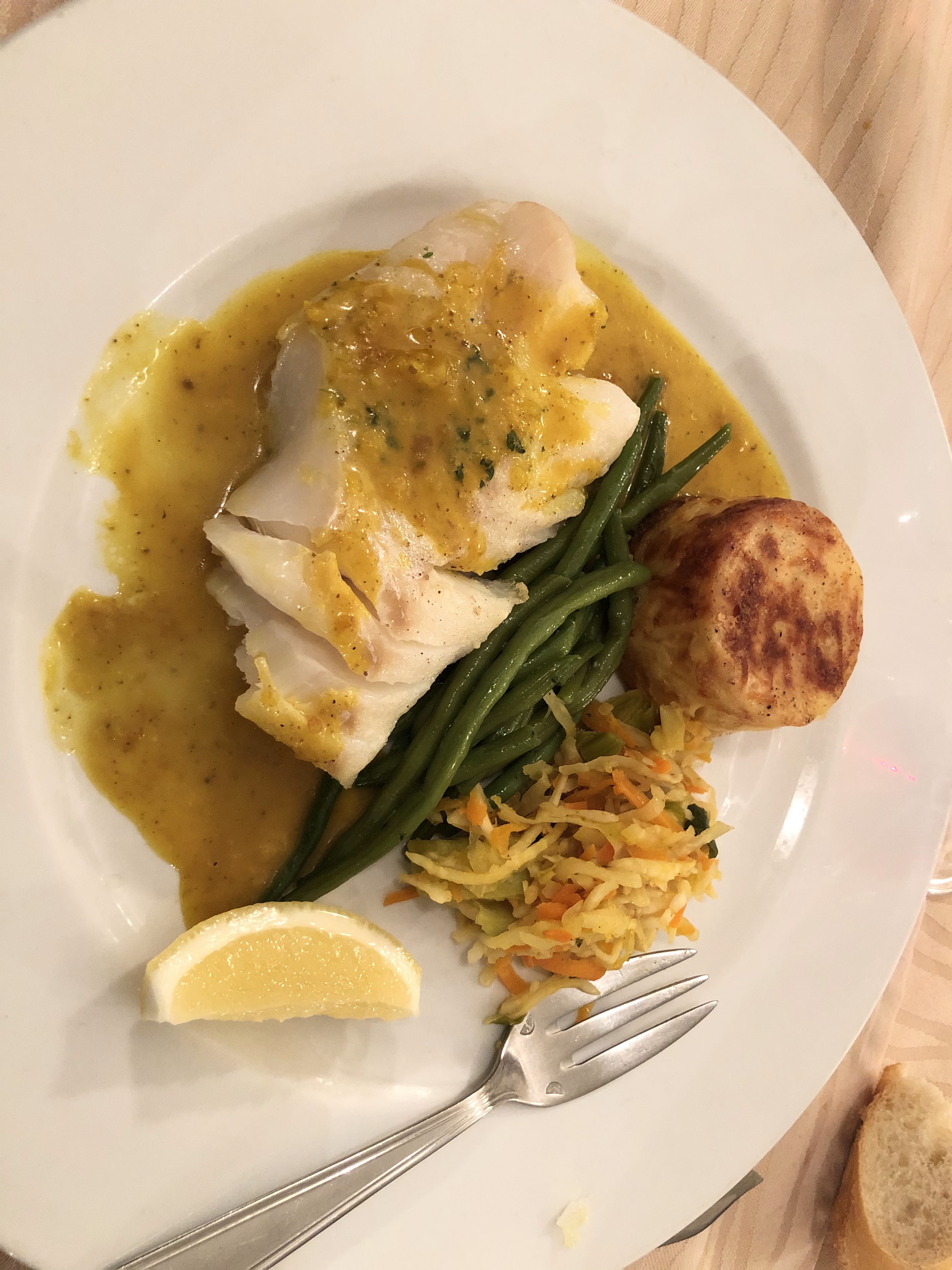 Cuisine très propre les assiettes sont bien garnies mon avis le filet de cabillaud bien qui soit très bon était peu copieux. a comparer à certain restaurants comme le gorky à blanc mesnil qui propose le même menu à moitié prix avec des désserts identiques et des vins beaucoup moins chers ,restons positif nous avons passé un bon moment entre amis