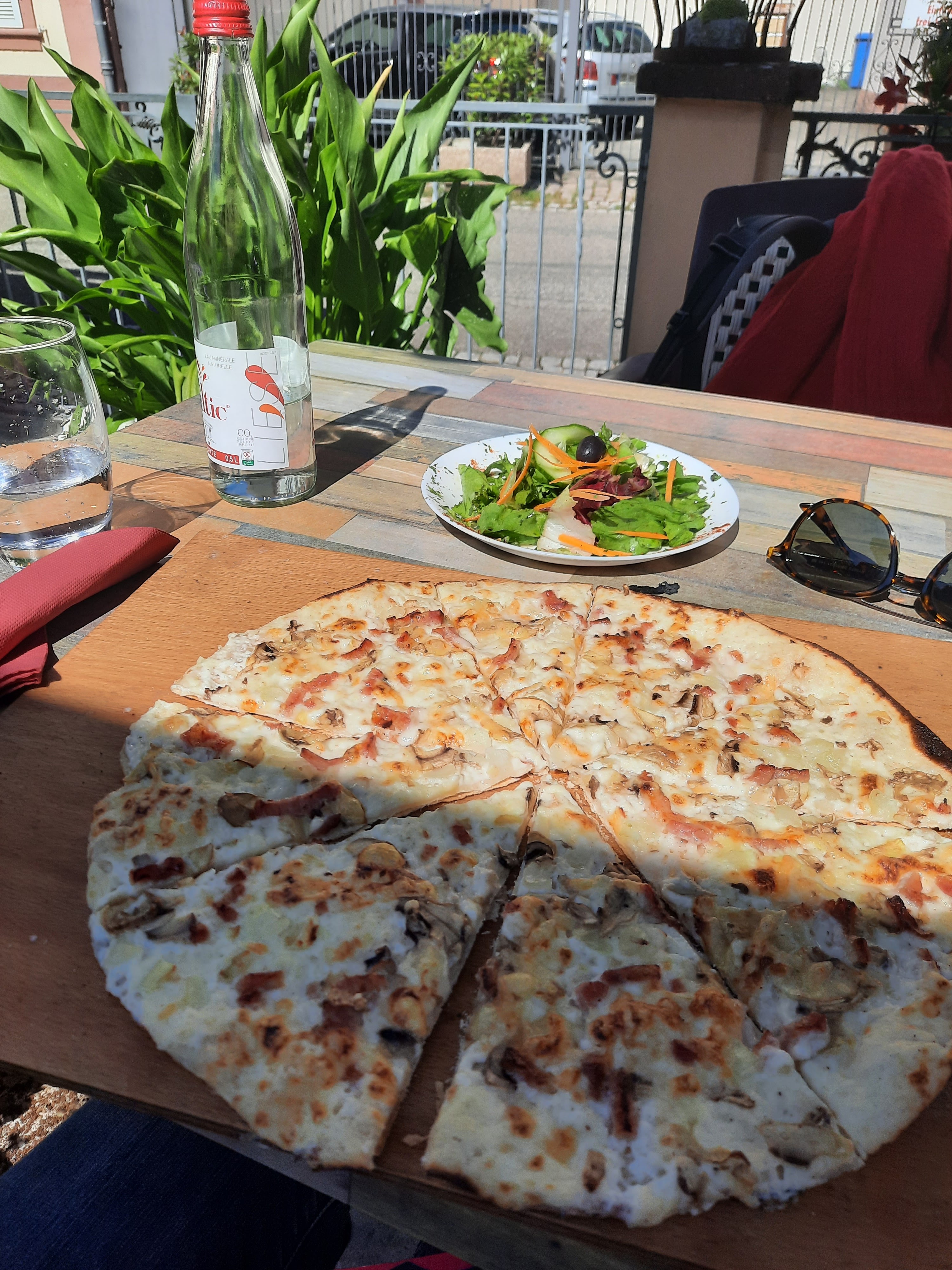 La tarte flambée était très savoureuse. Du cidre en bouteille aussi.