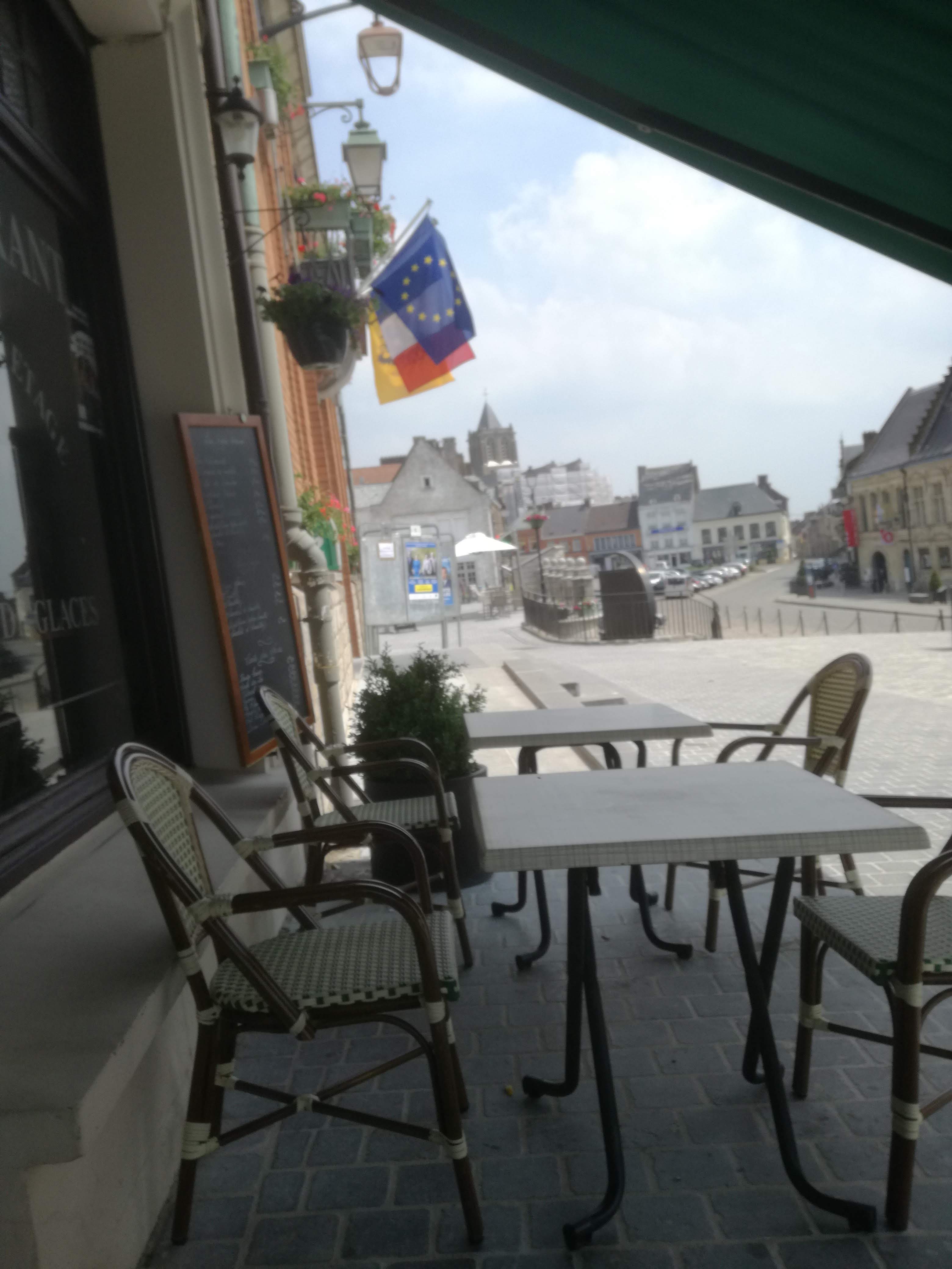 Très bien placé sur la place de Cassel. Des concerts le soir, très bonne ambiance