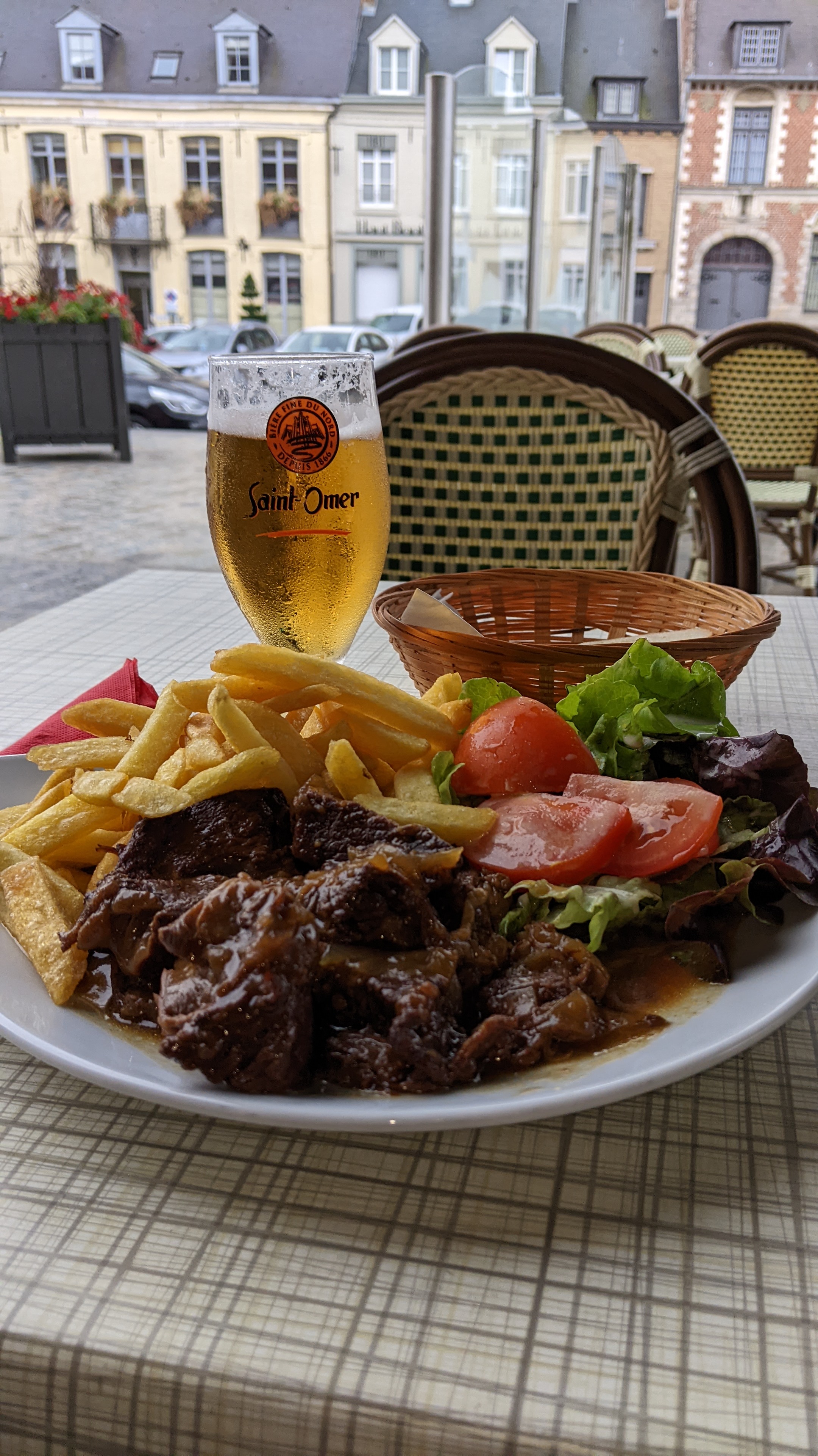 Une bonne adresse pour déjeuner sur la grand place de Cassel, la carbo est bonne, sa bière aussi.