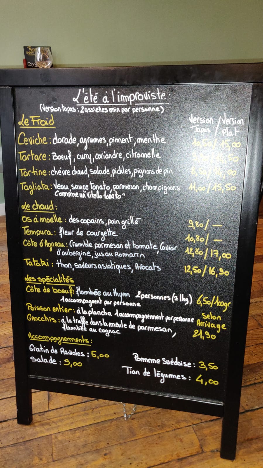Un désenchantement complet. M'étant fié aux avis google, mon expérience à l'Improviste m'a quelque peu désappointé. Le serveur est d'humeur acariâtre, franchement pas sympa. Il ne prend aucun plaisir à nous décrire les plats. Une fois la commande passée, un défilé mortuaire est effectué par le personnel. On vous présente la BÊTE que vous allez manger. En ces temps de COVID, trancher une pièce de boeuf en extérieur sans gants, c'est quelque peu révoltant. Les tarifs proposés ne sont pas justifiés. Une bouteille de St Jo à 50 balles, c'est du vol. Les plats sont corrects sans être transcendants. Imaginez votre déception si vous tirez la boule noire au jeu Motus, c'est le ressenti que vous aurez en allant à l'Improviste !!!! Evitez-vous cette peine et allez vous régaler dans d'autres restaurants à quelques encablures de là.