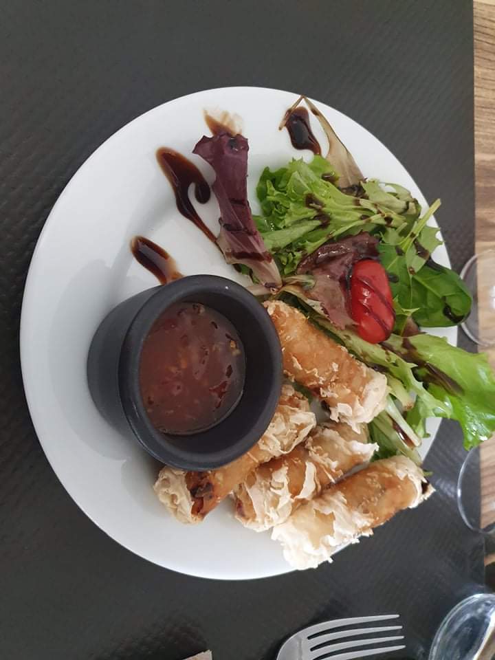 Cuisine bien préparé avec produits frais. Endroit en bordure de route avec jeune enfant pas conseillé.
