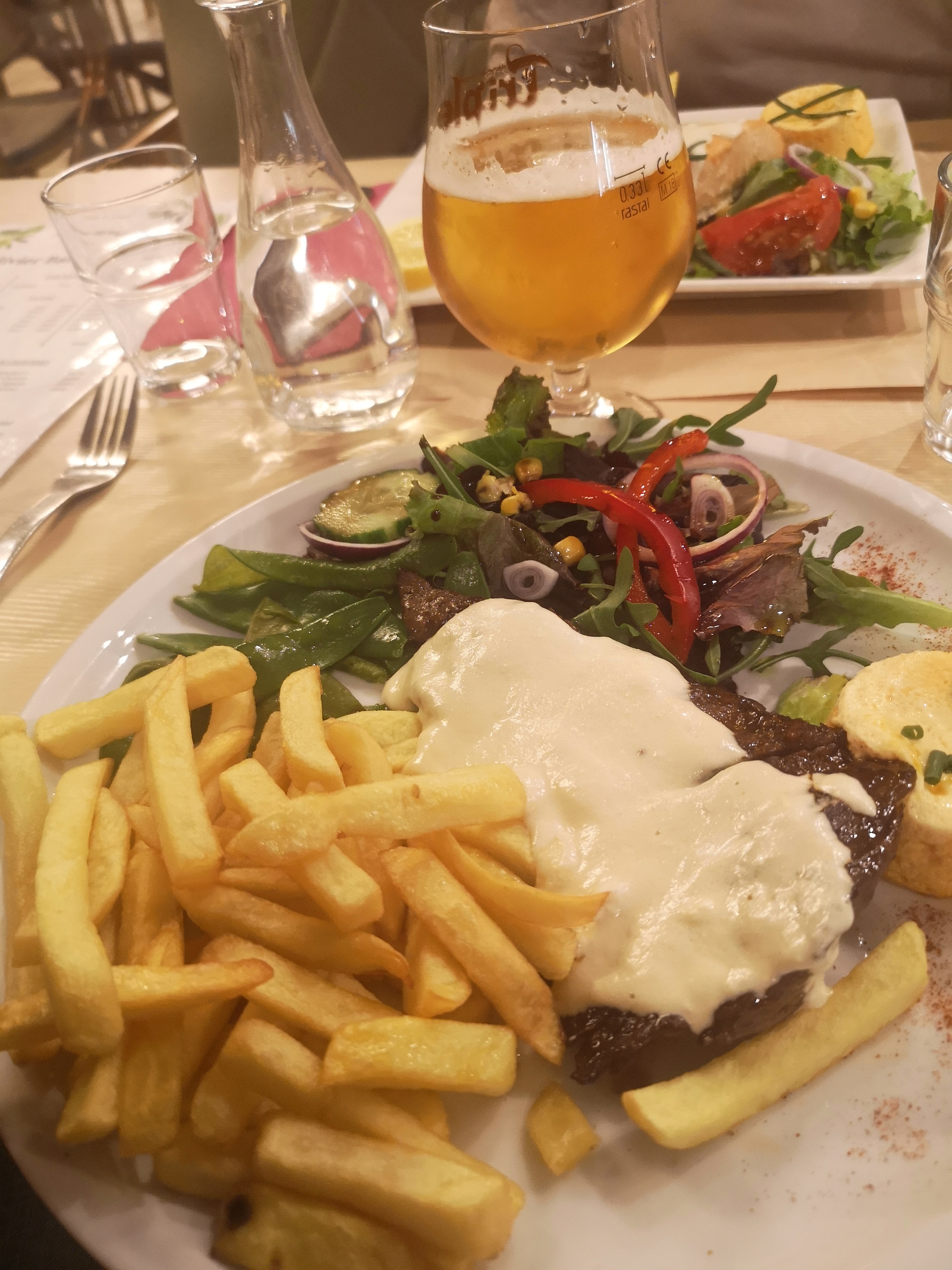 Accueil sympathique dans une brasserie qui présente bien, bon service, bonne bière belge et viande cuite comme il faut avec une petite sauce au maroilles qui passe très bien :D Je recommande ;)