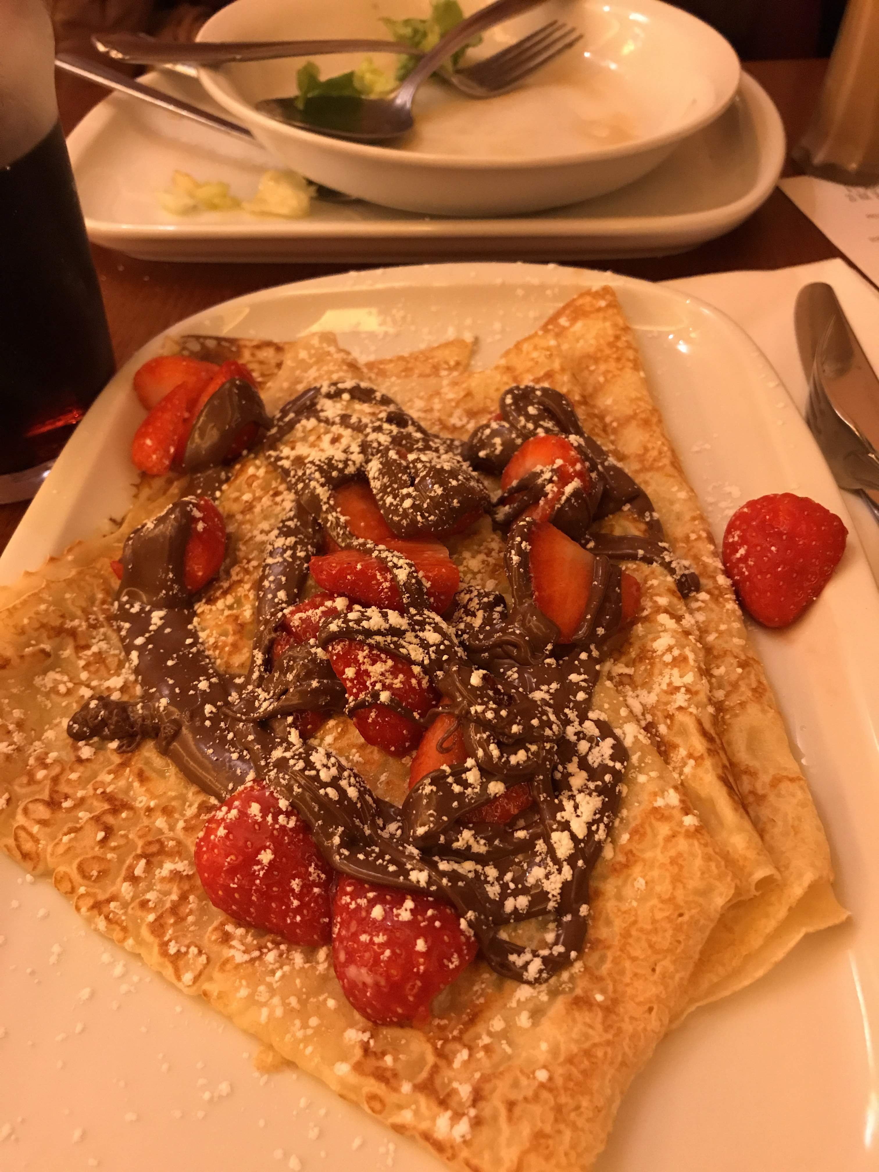 Nous avons commandé chacun une crêpe au Nutella et j'ai mis une nouvelle pâte sur la plaque chauffante puis j'ai ajouté de la pâte déjà faite et en la mangeant on pouvait voir l'ancienne pâte. C'était dur et insipide. Je ne le recommande pas.