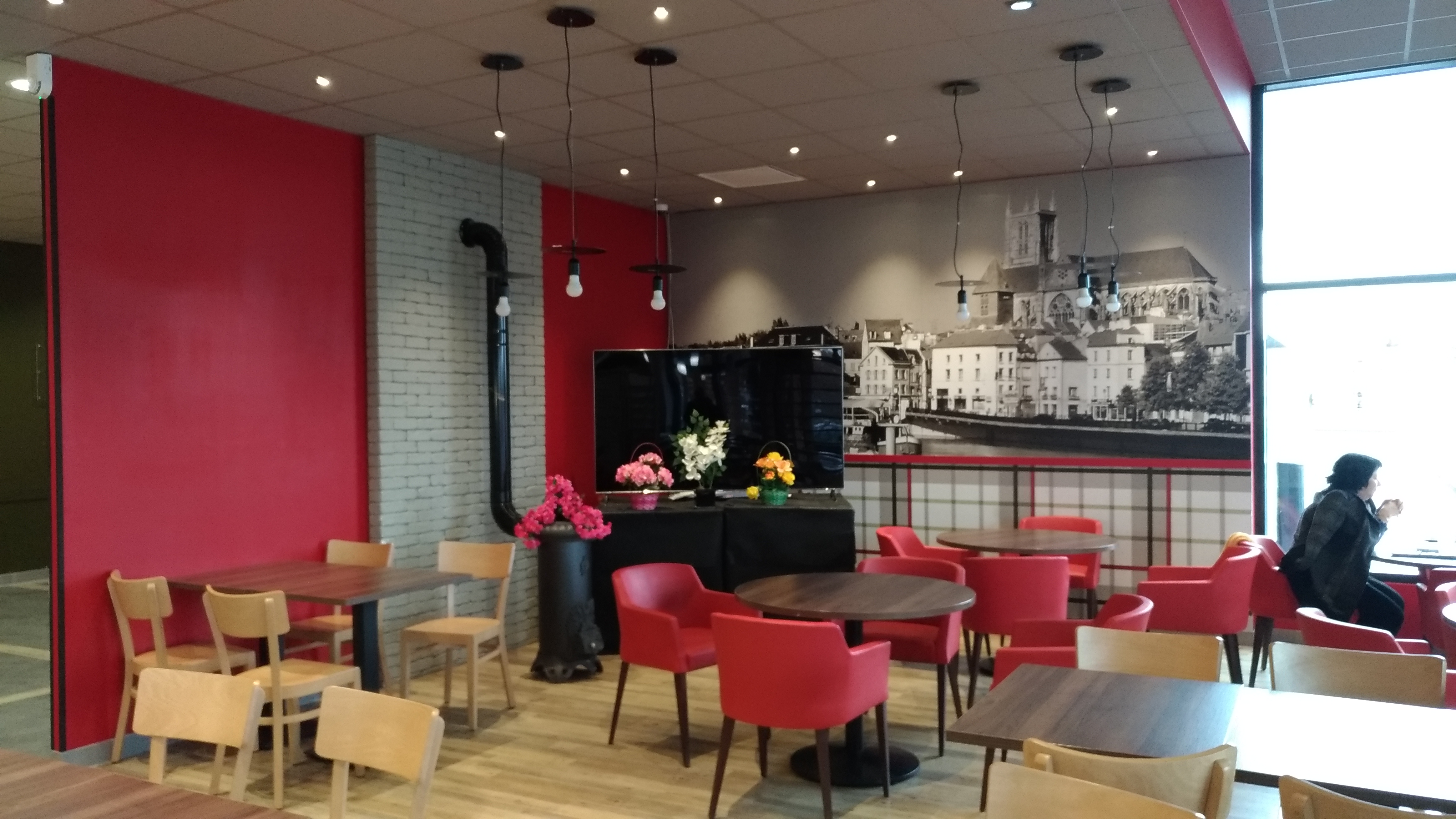 Libre service, nourriture variée et bonne. Lieux sympa pour une repas entre collègues.