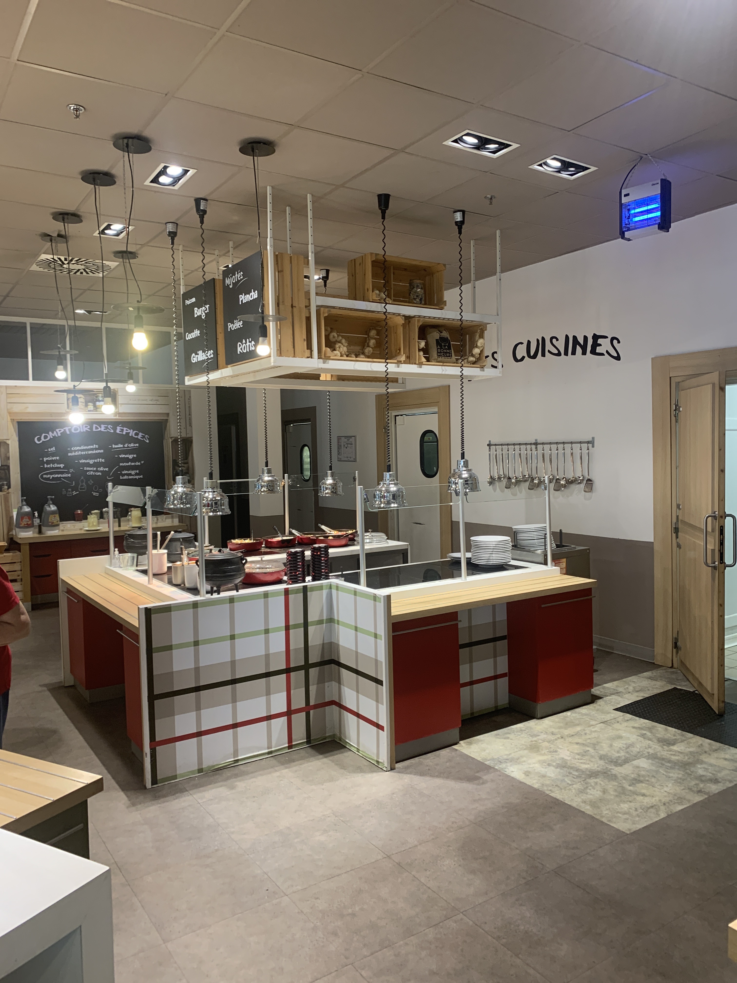 CATASTROPHIQUE,pour commencer pass sanitaires non demandés,on prend un plateau et y a plus de couverts. Le personne en caisse ( très gentille) part essayer d' en récupérer et toujours pas de couverts... On s installe, mon fils part commander son hamburger , revient avec son bipeur( ça sonne quand c est prêt) moi direction le buffet des entrées, là ,plusieurs plats vides ,nous avons le choix entre des carottes râpées,des cornichons et des tomates 🤔 pas grave de toute façon y a plus d assiettes. Je demande à un employé ou sont les assiettes,il me répond dans le lave vaisselle. Au bout d un moment quelques assiettes arrivent brûlantes ( elles étaient bien dans le lave vaisselle) en 10 secondes y en a plus,vu le nombre de clients qui attendaient. J ai réussi à en avoir , je me sers mon entrée et ou est le pain... Il est entrain de cuire. Pas grave, mon entrée ne va pas refroidir. 10 minutes après le pain arrive 😀. Les nouveaux clients arrivent et même combat. Y a plus rien mais ça continue d encaisser les nouveaux clients. 15 minutes après le bip de mon fils sonne il va au buffet et revient les mains vides y a plus d hamburger On va au stand chaud, une dizaine de personnes attendent aussi leur hamburger,ben y en a plus!!! Ça commence à s échauffer entre les clients et le personnel. Des clients veulent se faire rembourser. Hooo regarde fils y a quelques des frites , ok mais y a plus d assiettes !!!! Finalement un pseudo responsable sort de sa cuisine et essaie de calmer les esprits. Finalement il va y avoir des hamburgers oufff . Le buffet dessert et plein de vide mais je trouve un peu de mousse au chocolat. Entre temps ils ont remis des pois chiches et des radis aux entrées. Le hamburger arrive ,y avait du roquefort car plus d autre fromage. Les tables sont couvertes de plateaux vides, plus de place sur leurs chariots. On va faire un dernier tour aux toilettes 😳😳 ,( il faut prévoir des bottes de pluie) ou un canoë... Donc direction la sortie. Voilà mon expérience , à vous de voir......