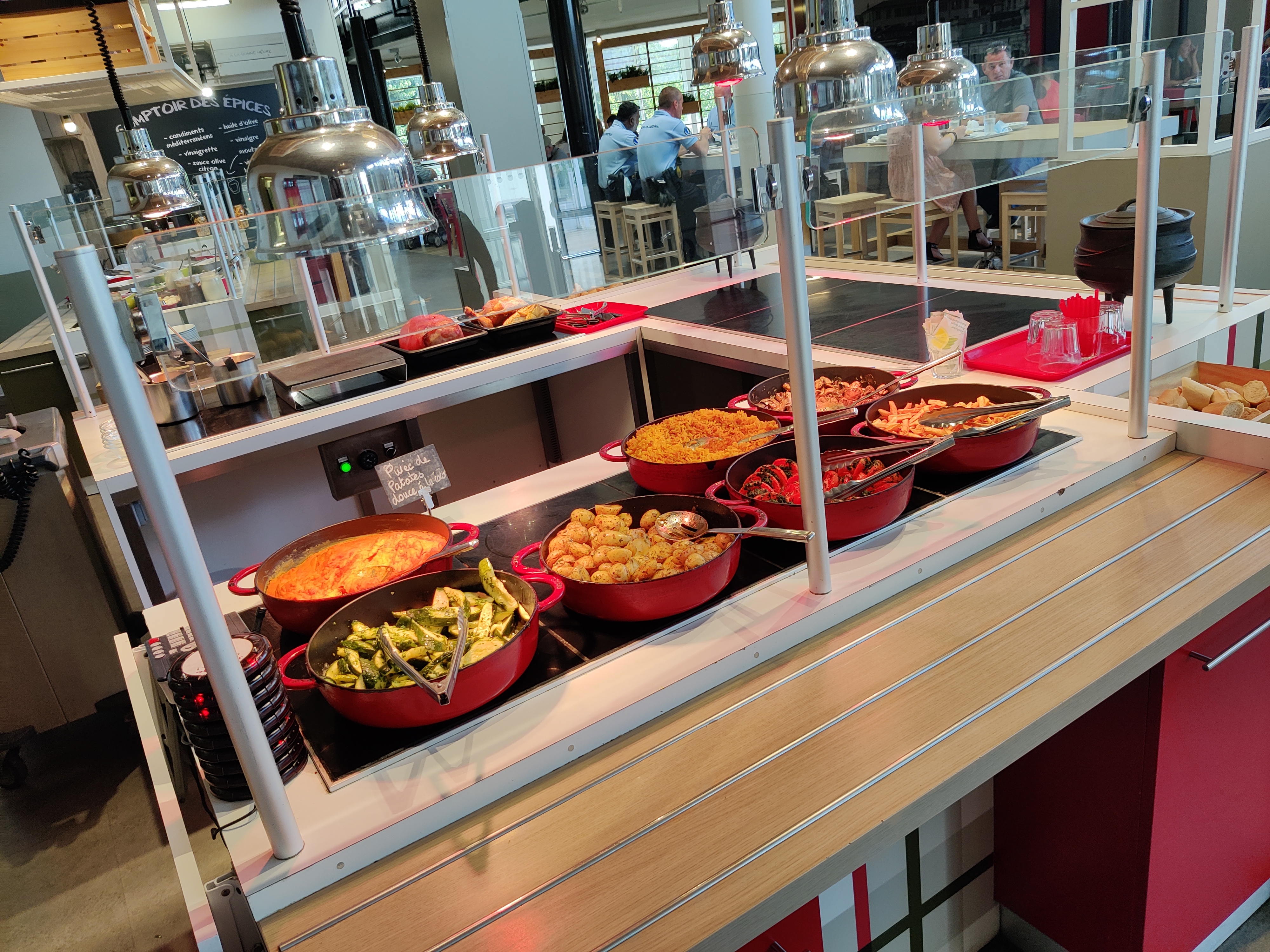 Pour manger vite fait mais pas vraiment bien fait... Surtout les légumes Après les entrées très bien Les desserts ça dépend à quelle heure mais bien quand même Le petit ➕ l'eau detox 👌