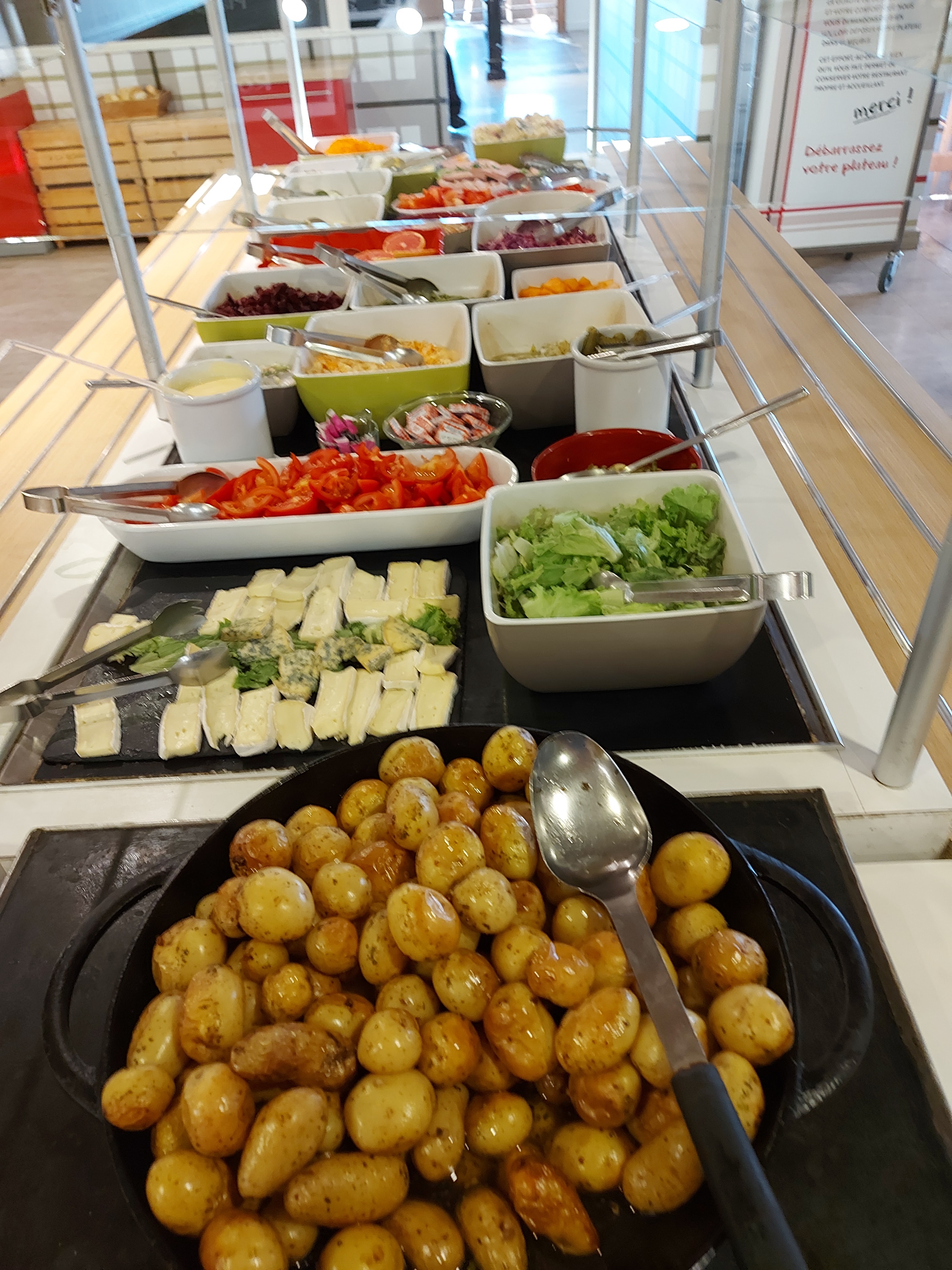 très déçus il a aucuns noms sur les entrées et les dessert en plus il n'avait même pas de la chantilly ni chocolat chaud pour les glaces parce que sois disant a cause du COVI alors que tout le monde touchent les mêmes cuillers et les mêmes louches pour se servir comme c'est une cafeteria