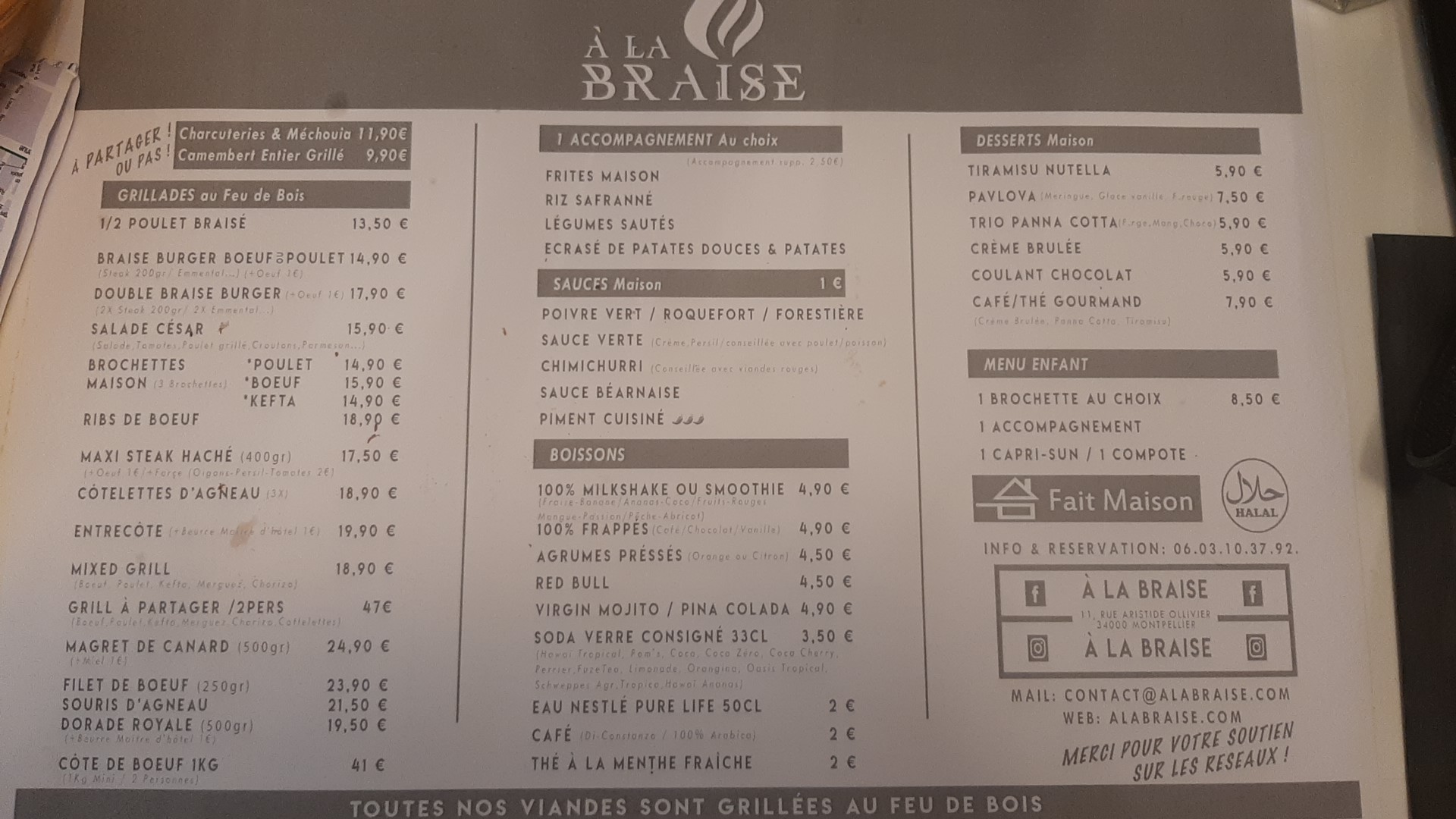À la fin de notre séjour à Montpellier, moi et mes amis nous sommes arrêtés À la Braise sur recommandation de notre Uber et je n’ai pas été déçu. L’accueil était excellent avec un personnel très humain et à l’écoute de notre ressenti sur les plats je recommande vivement 😊