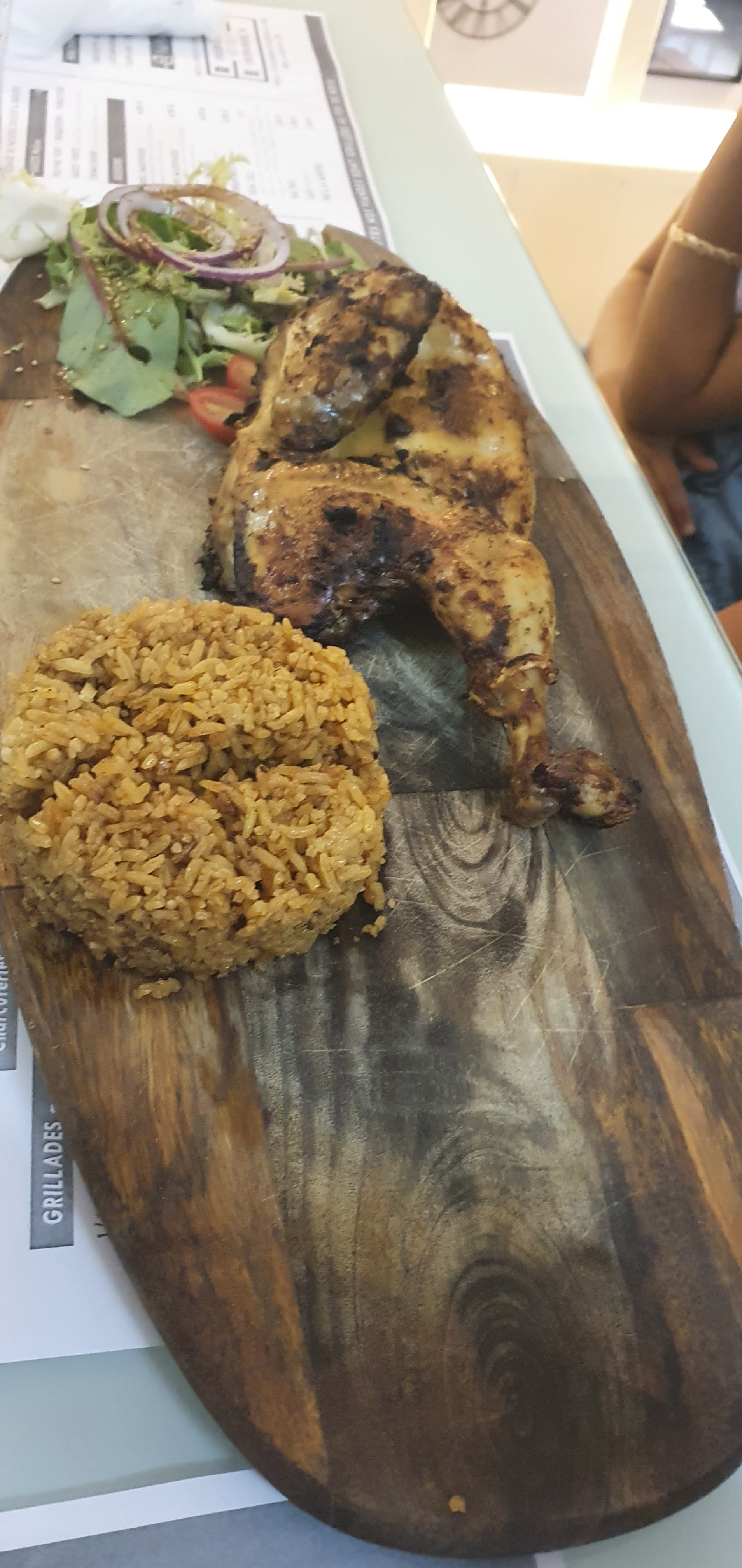 Un accueil des plus chaleureux. Une déco simple et épurée; en terrasse ou en intérieur ( avec une clim très bien équilibrée). Un véritable service client au petits soins où règne la convivialité, le professionnalisme : (générosité,souriant, a l'écoute, attentionné...), D'autant plus, Le Service des plats est rapide. Une belle qualité dans les assiettes. Des produits frais et fait maison. Le rapport qualité prix est excellent. ( Photo 1/2 poulet braisé et un menu enfant) J'ai passé un agréable moment et c'est une adresse que je recommande vivement .