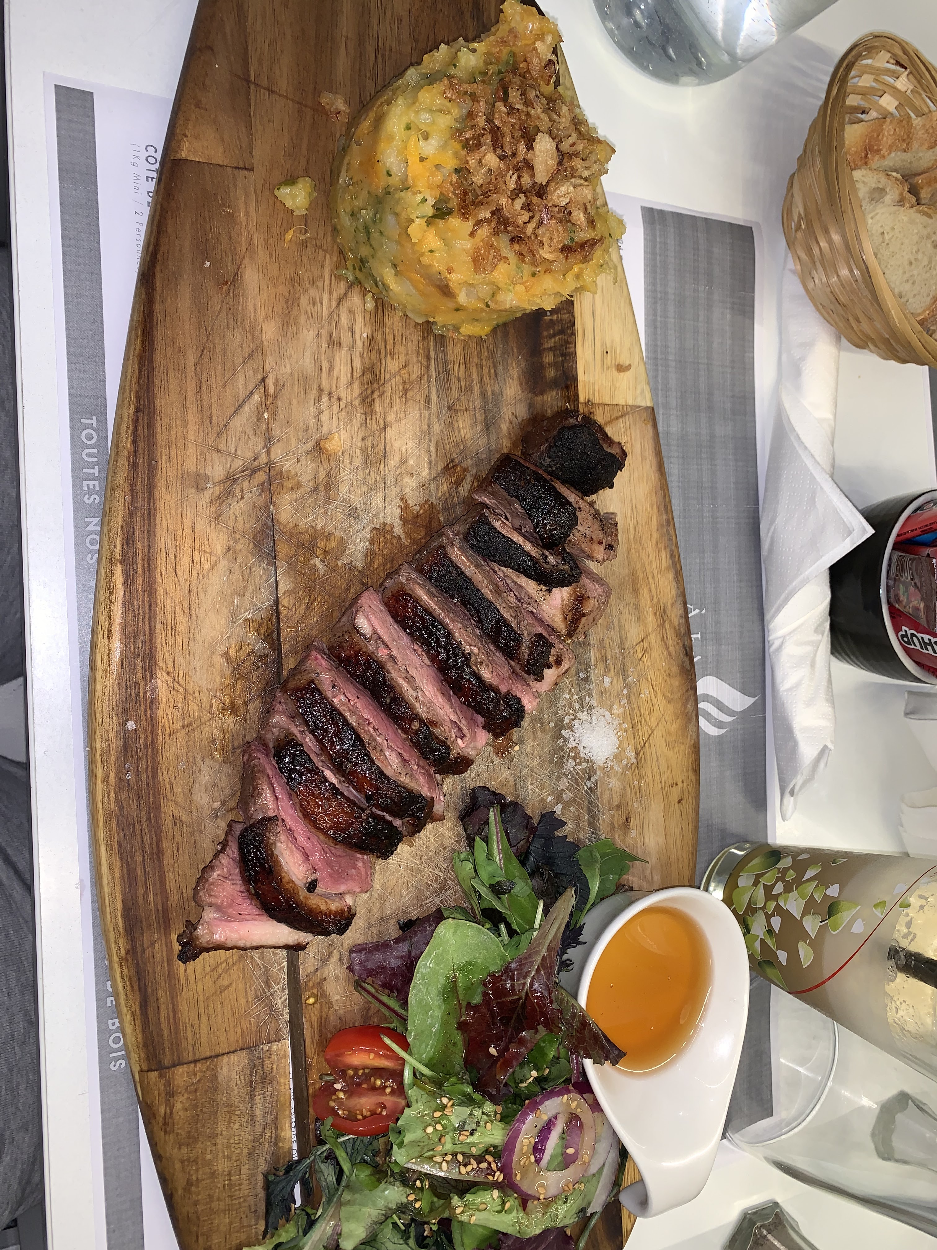 Bien déçu Côte de bœuf annoncé à 1kg, alors que au final 6 pauvres morceaux de viande étaient sur le plateau Des serveurs qui n'ont pas appris à dire bonjour, merci, et au revoir. Le nom du restaurant est en bonne adéquation avec ces plats étant donné que les morceaux de viande étaient grillés carbonisés sur le dessus. Aucune satisfaction. Fuyez