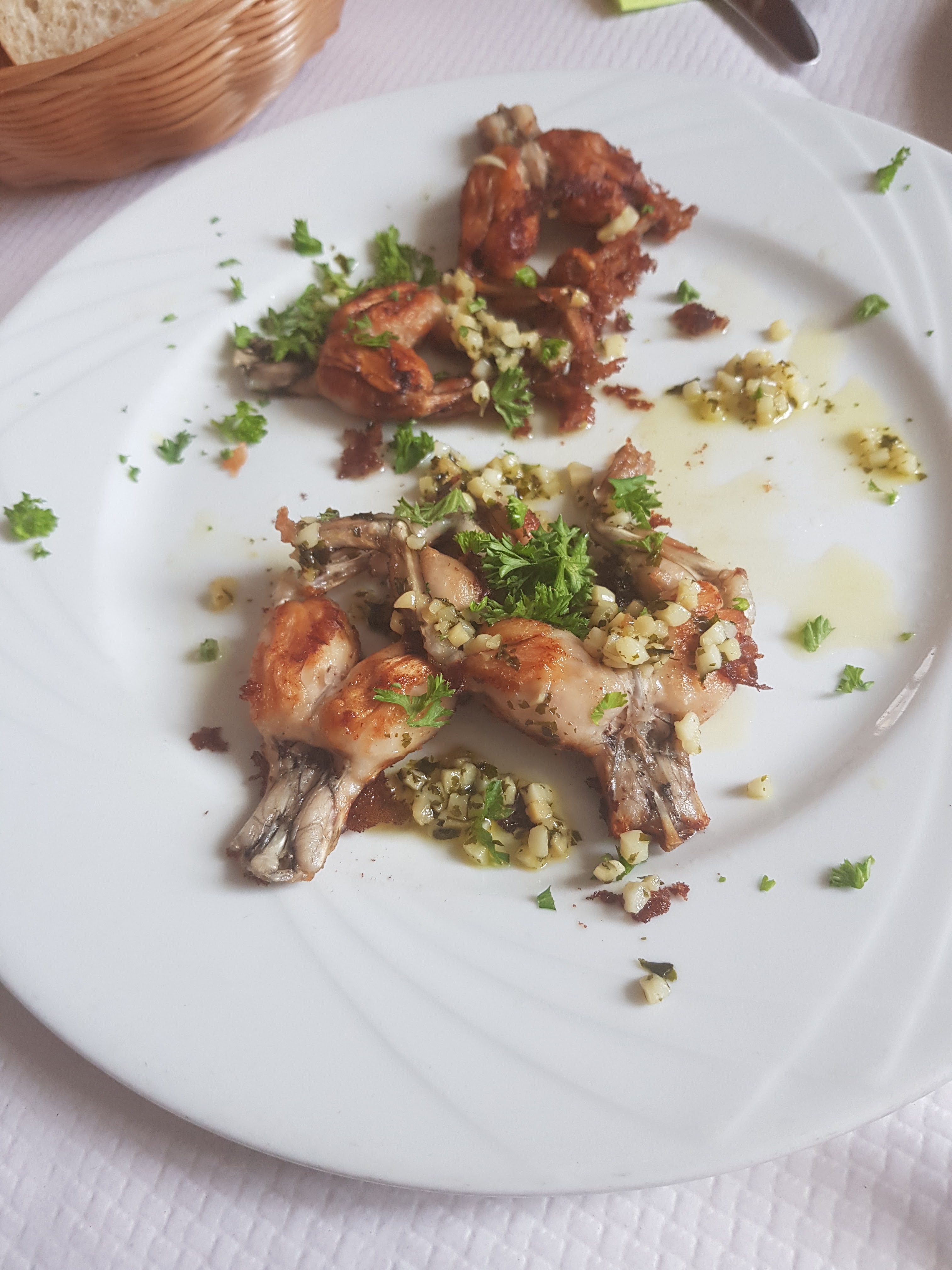 De délicieuses et juteuses cuisses de grenouilles dans une sauce à la crème au vin blanc, suivies d'un pudding à la crème en croûte de sucre. La petite ville est une beauté pour se promener facilement après la bonne nourriture 🥘