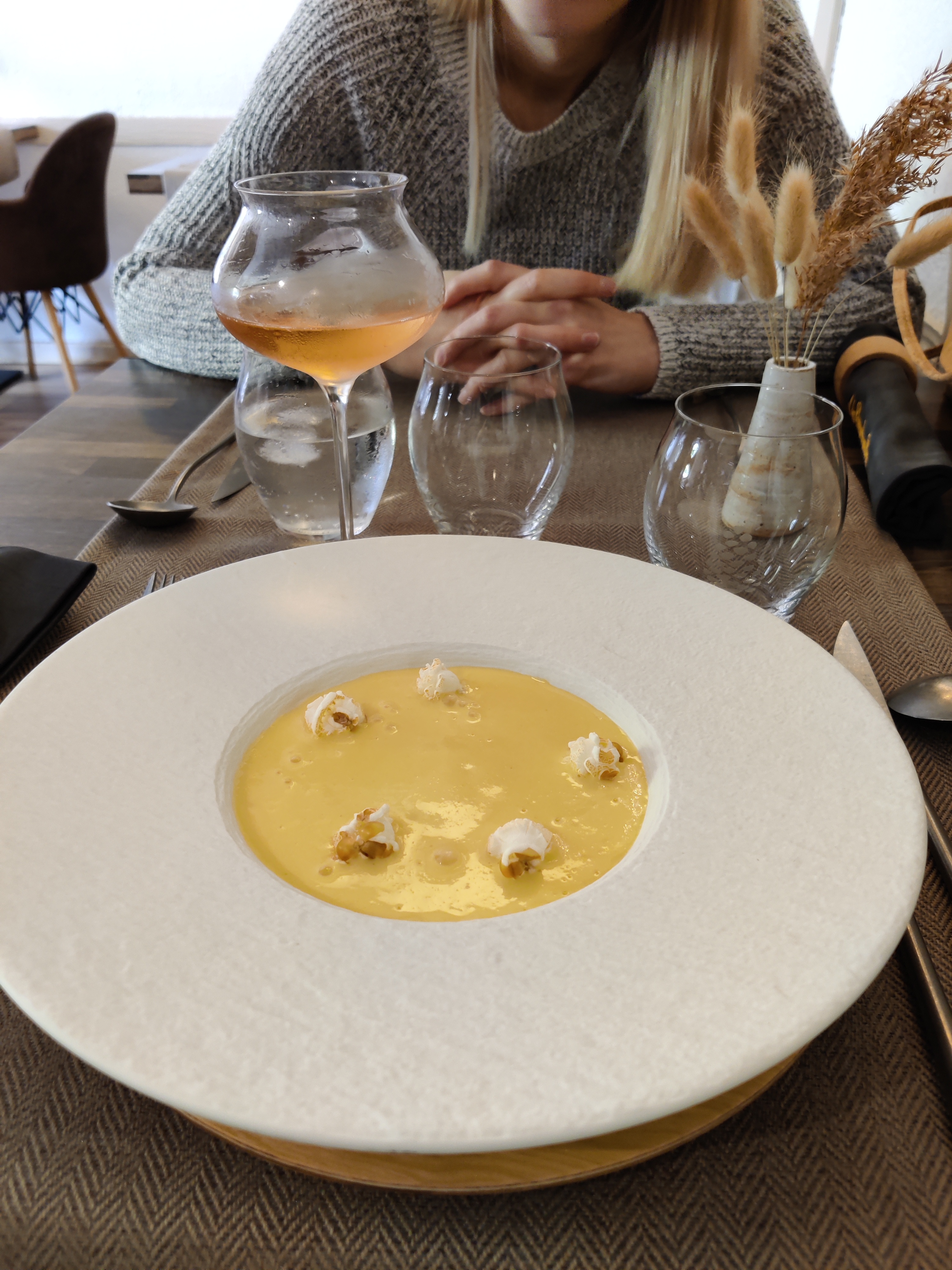 Très belle expérience. Repas surprise, le menu concocté par le chef fait la part belle aux épices et associations inattendues.Presentation sobre dans l'assiette et dans la description , les vins conseillés s'accordent parfaitement avec les mets proposés, le service est discret et efficace . Ne quittez pas Gerardmer sans une visite à ce bel établissement .