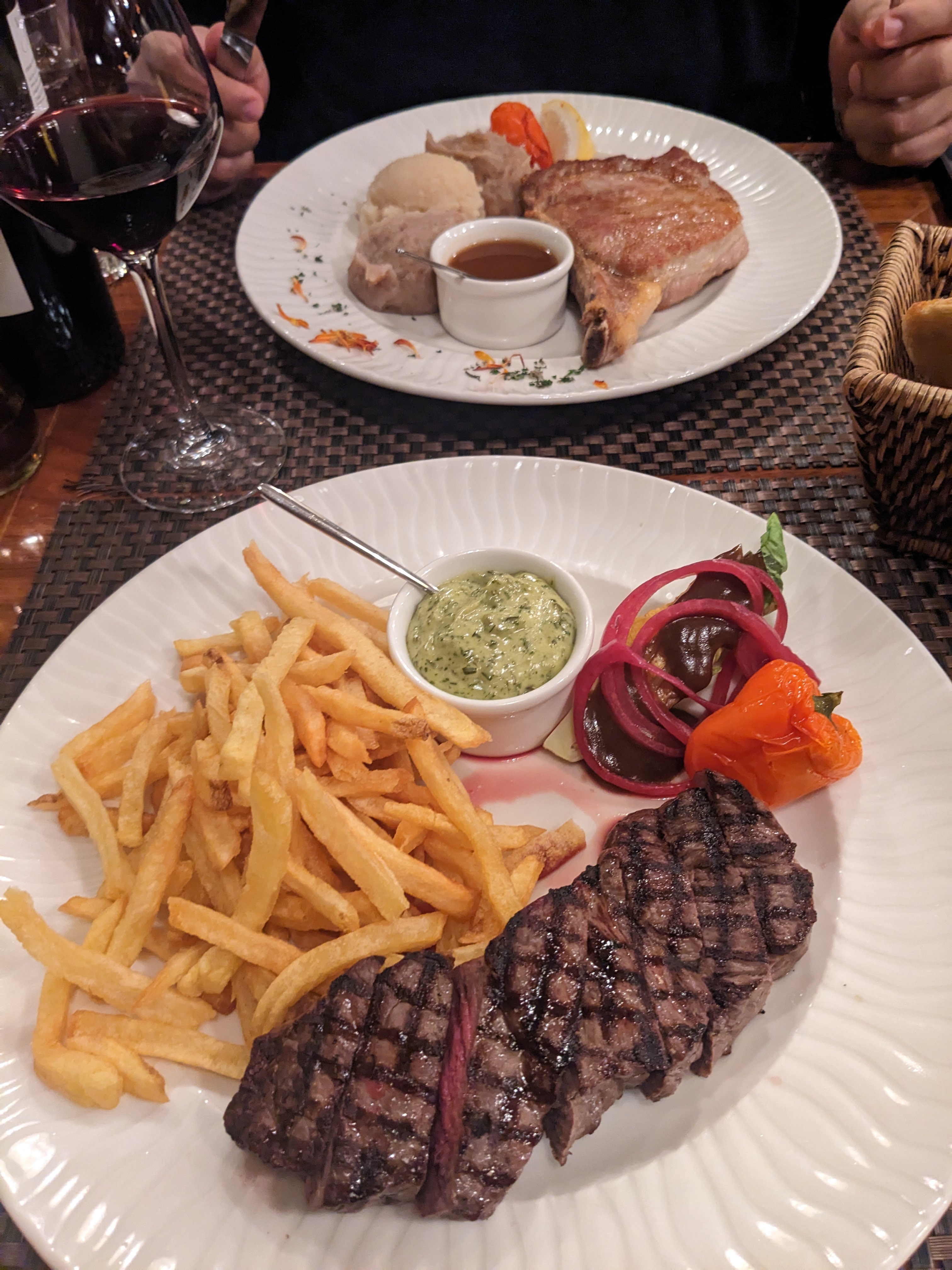 Bel endroit! Le service était excellent, attentionné et gentil. Nous avons accidentellement commandé certaines choses (je ne pense pas que le partage soit aussi populaire à l'étranger), mais cela ne nous a pas vraiment dérangé. Les steaks étaient cuits à la perfection et les escargots étaient superbes. Le personnel était adorable et s'est mis en quatre pour nous accueillir et nous traiter car c'était notre lune de miel. Ils nous ont même donné une table privée pour que nous puissions profiter de la compagnie de chacun.