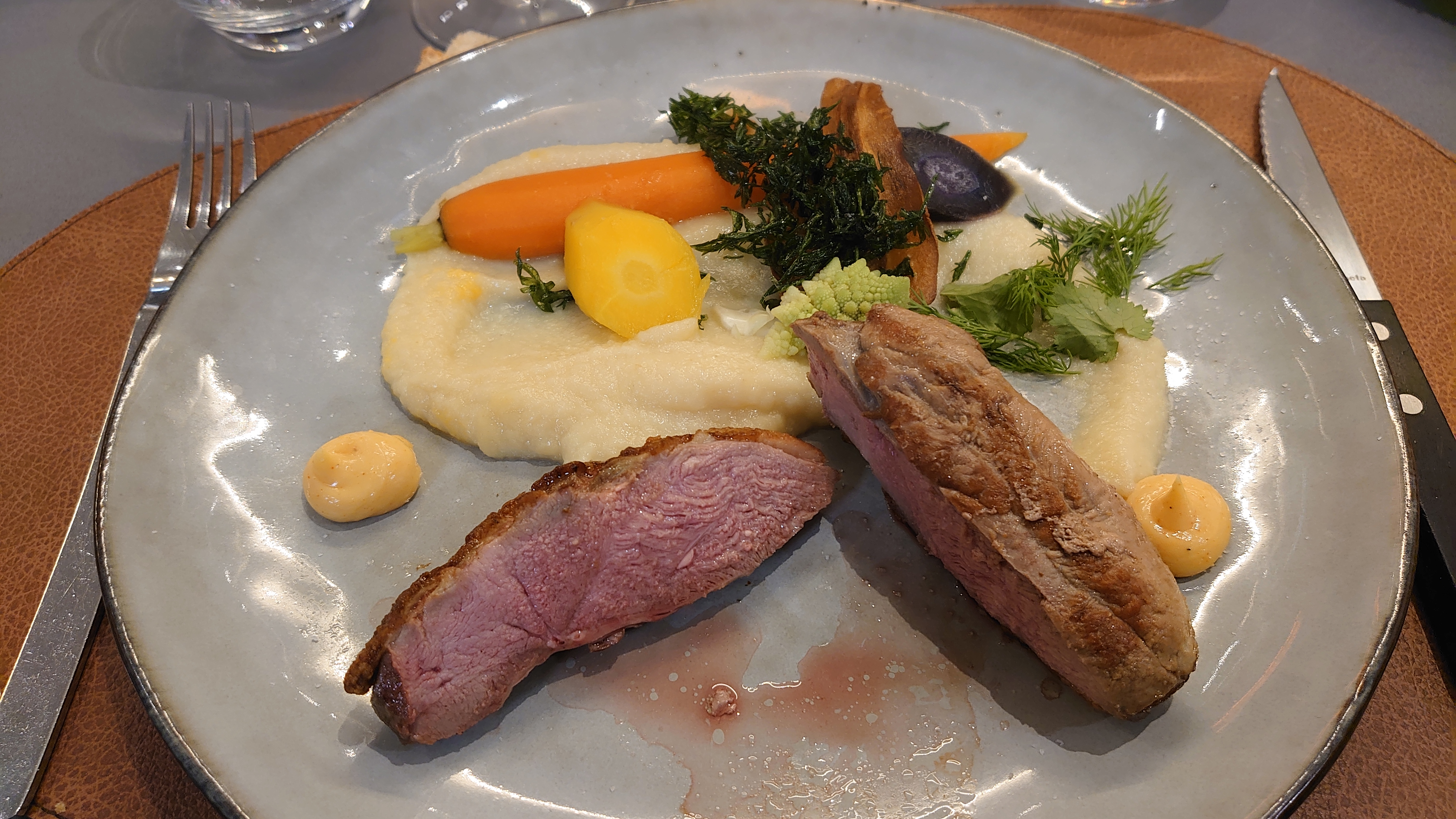 Nous étions de passage et avons déjeuné sur le pouce: pizza et tartine, très bonnes. Et sur les tables voisines, des plats très beaux et excellents, d'après les voisins. On espère pouvoir y retourner pour profiter du menu gastronomique.