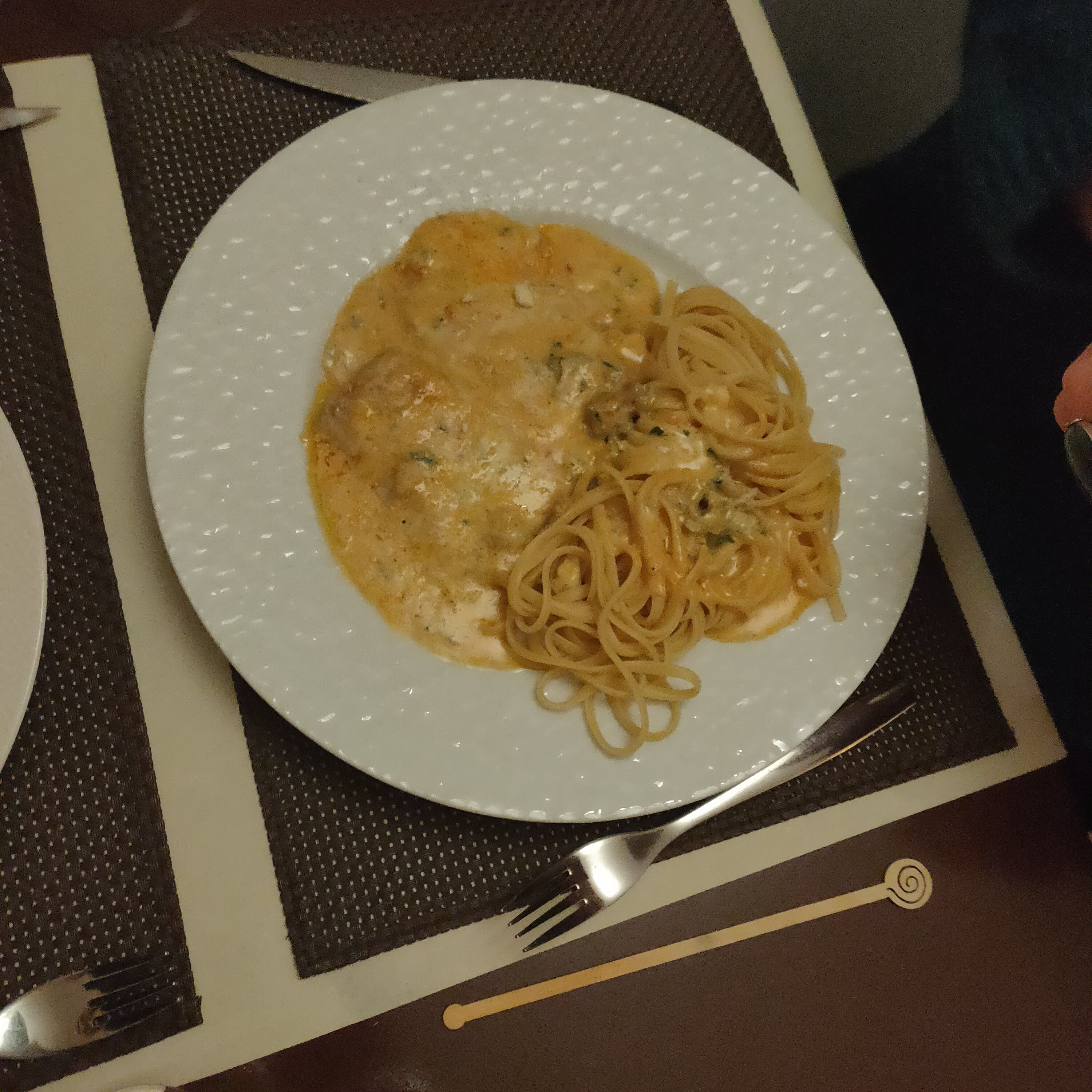 Un dîner en famille pour un anniversaire. On s'est tous bien régalé. C'est comme là-bas en Italie. Bon et bien servi