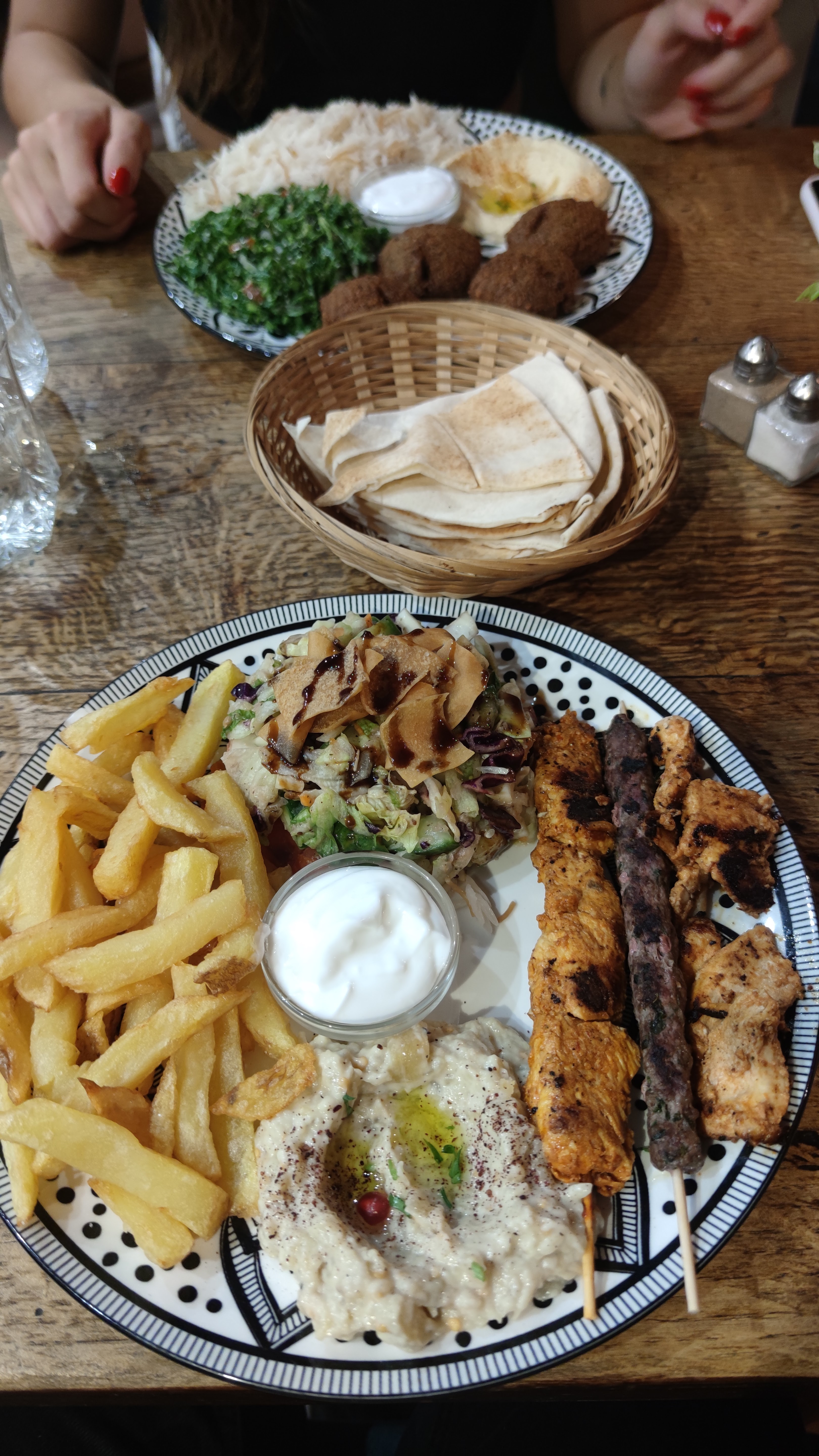 C'était vraiment très bien présenté et ça faisait envie. Mais honnetement c'est un des plus mauvais libanais que j'ai mangé. Le riz vermicelle sentait le mouton, les frites était noir d'huile. Le houmous passe, le boeuf haché et le poulet aussi. Mais vraiment c'est dommage.