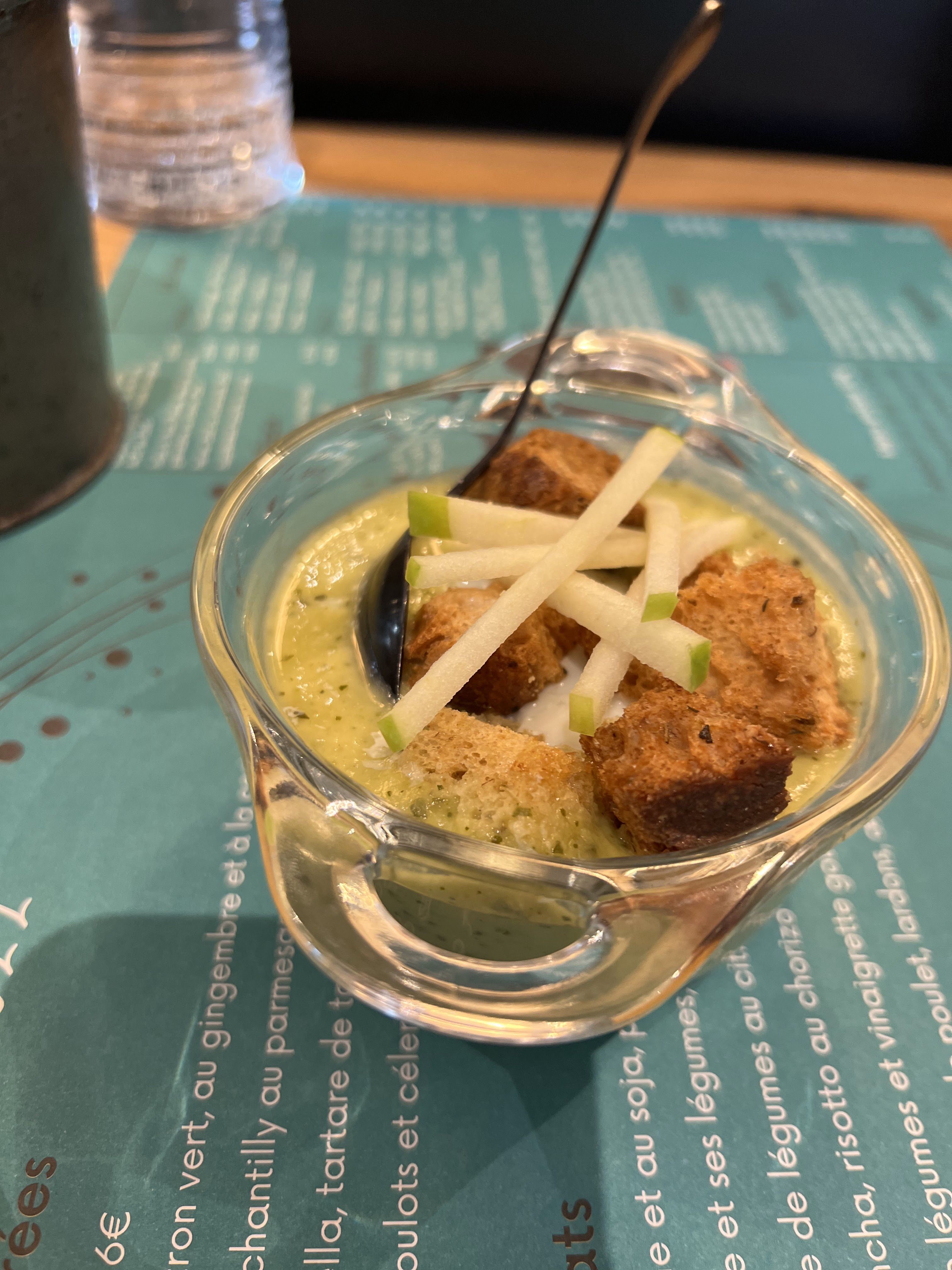 DÉLICIEUX… Quelle belle surprise ce restaurant. Un menu plus qu’abordable avec des plats raffinés et goûtus. Le rapport qualité/prix est excellent. Entrée 5€ Plat entre 12 et 18€ Dessert 5€ Menu enfant 10€ Nous avons passés un bon moment entre amies avec un service souriant et efficace. Je recommande et je reviendrai avec plaisir (Les photos sont les entrées que nous avions commandés ….un délice)