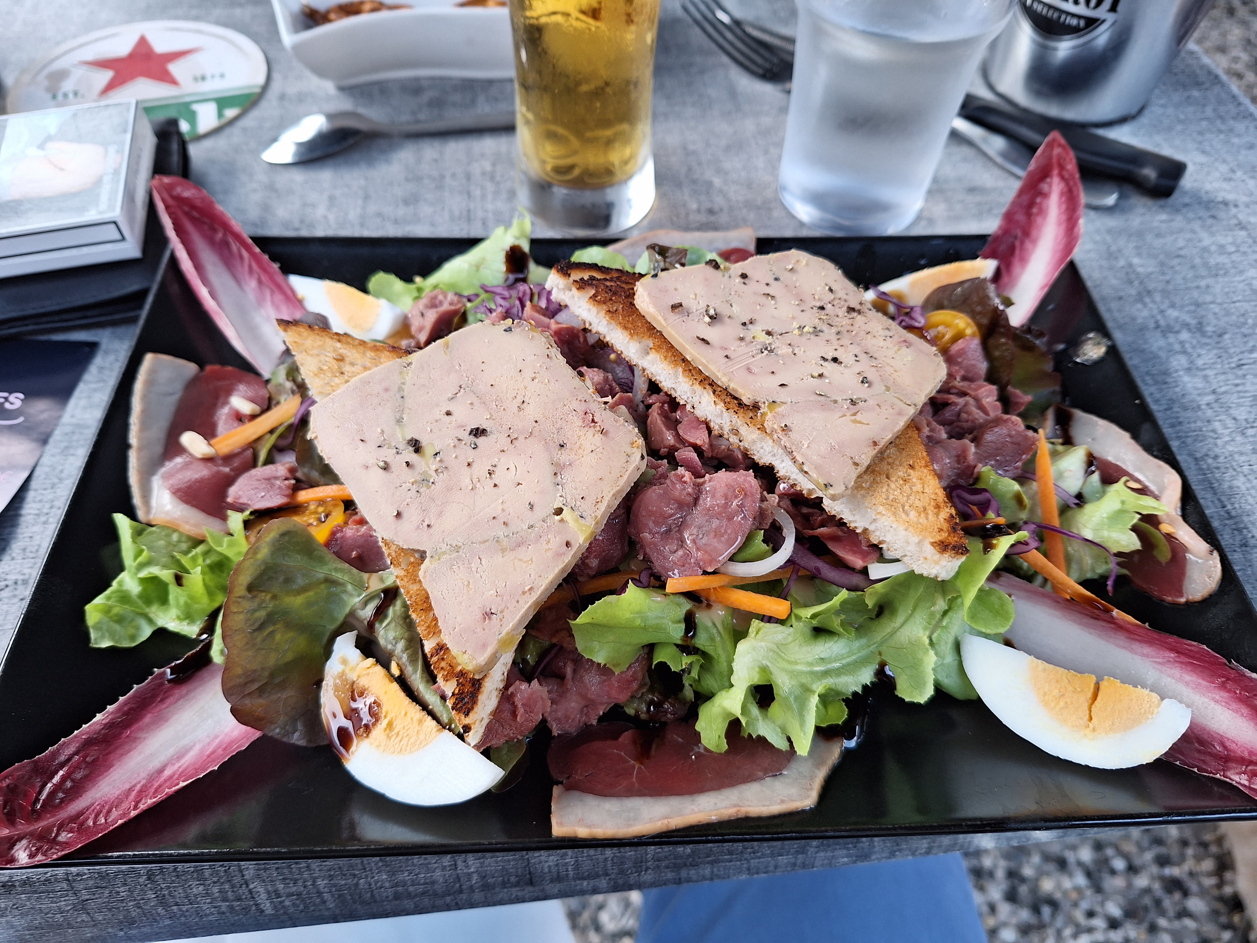 Salade périgourdine + 1 verre de blanc. Extra. Prix sympa.