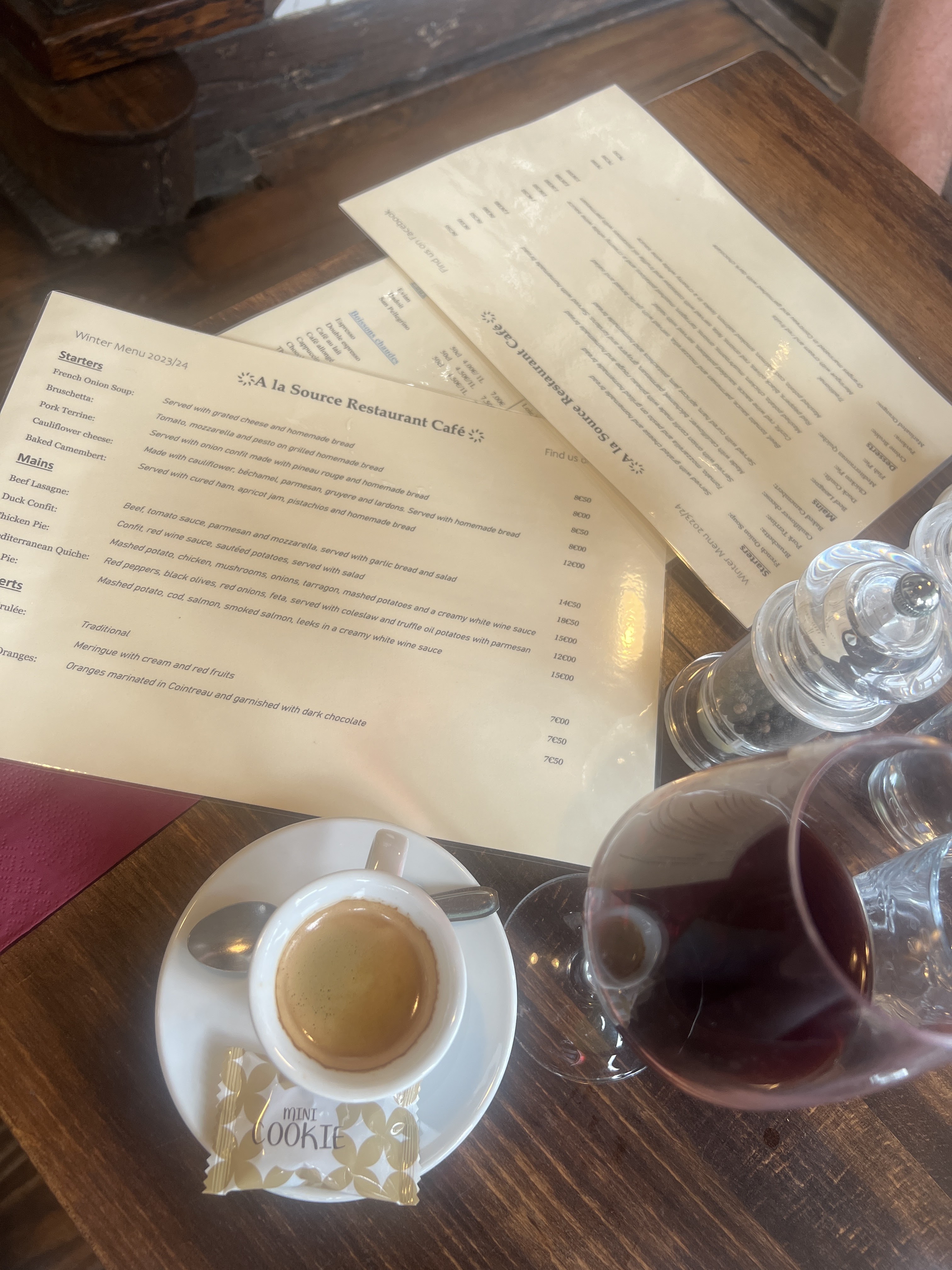 L'autre jour, nous avons déjeuné avec de bons amis au restaurant A la Source dans la belle Aubeterre sur Dronne, qui a récemment présenté son nouveau concept génial et très bienvenu avec un menu de saison changeant et de nouveaux horaires d'ouverture. Le menu limité a quelque chose pour tous les goûts et propose même une bonne et délicieuse option végétarienne, encore très inhabituelle dans la France rurale. Les nouveaux horaires d'ouverture sont absolument géniaux : A la Source est ouvert alors que presque tous les autres restaurants sont fermés, donc un dîner le dimanche ou une soirée le lundi sont désormais une option. A la Source Café, qui se trouve en face, sert du café, du thé, des scones, etc. Le personnel parlant français et anglais était très accueillant et efficace et l'intérieur est chaleureux et très cosy…….félicitations A la Source, nous avons adoré ! Pimm + Marcel