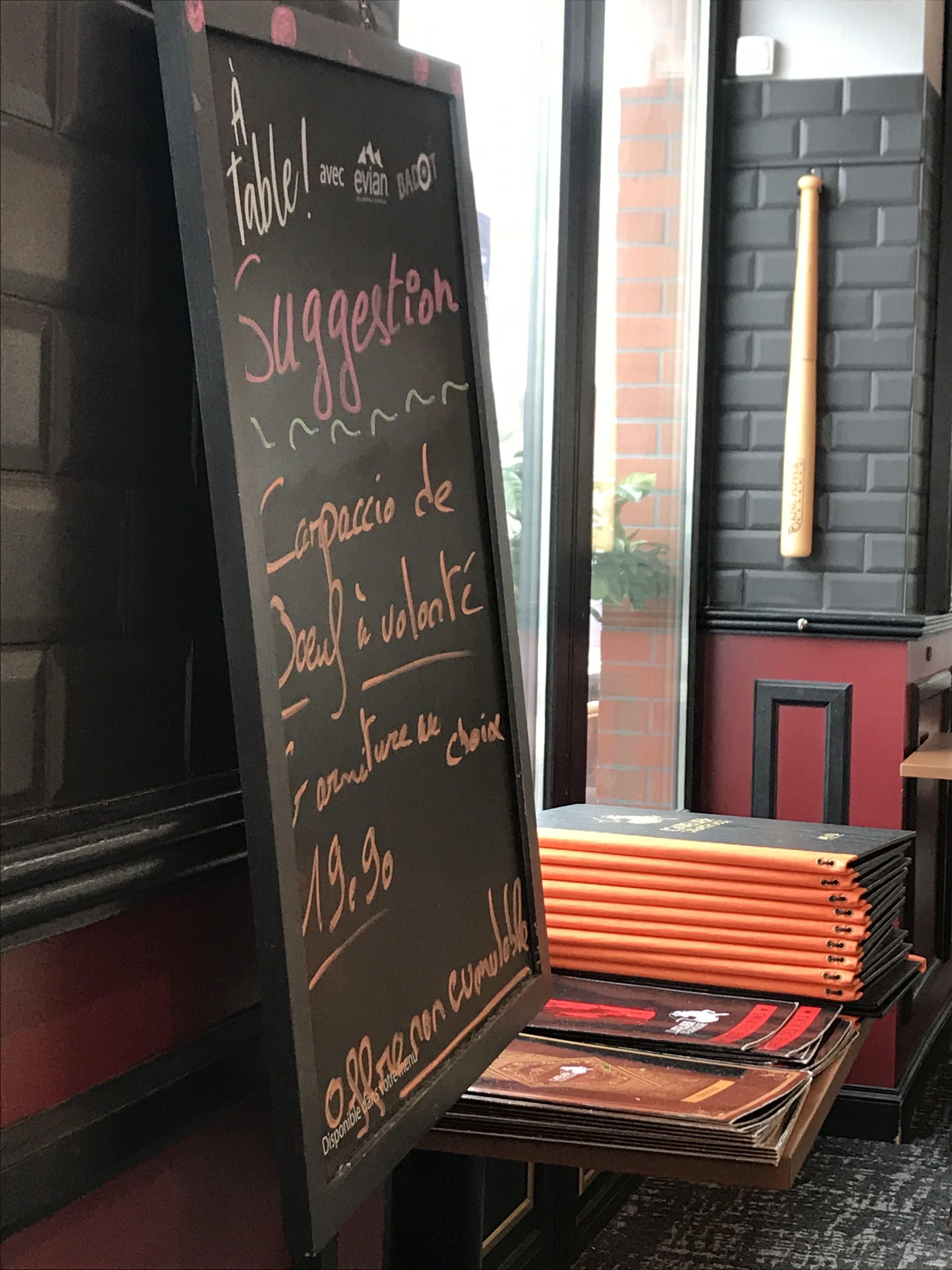 Un carpaccio très bon, mais des bières chères et le Steak haché du Burger plein de bouts caoutchouteux, vraiment pas agréable... dommage