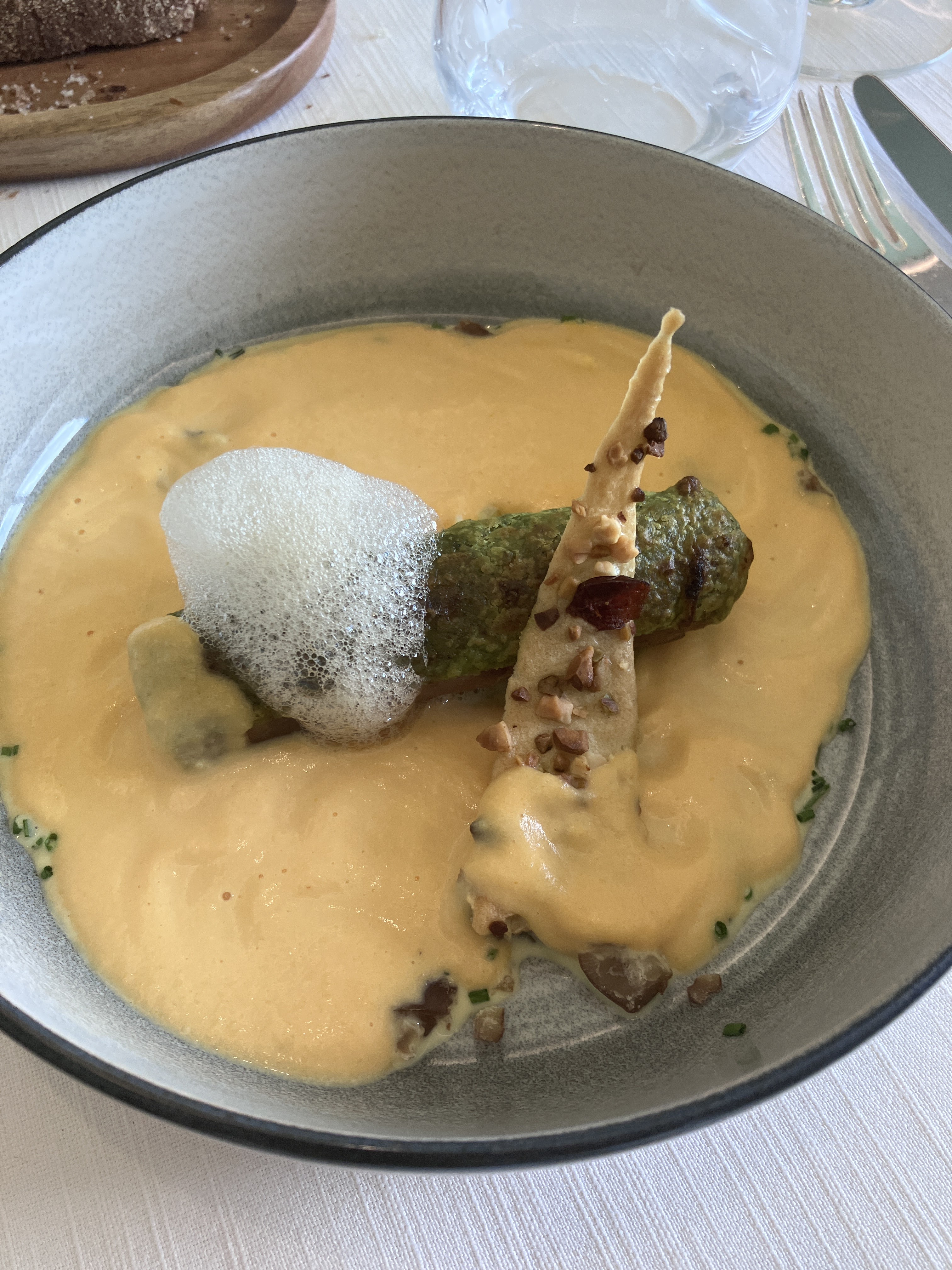 La réputation de ce restaurant est amplement méritée, un très bel accueil et un super service avec de bon conseil notamment sur le vin. Menu excellent de l'entrée au dessert. Coup de coeur pour Les fleurs de courgette de notre jardin farcies d’une mousseline de brochet, tempura de homard et bisque crémeuse