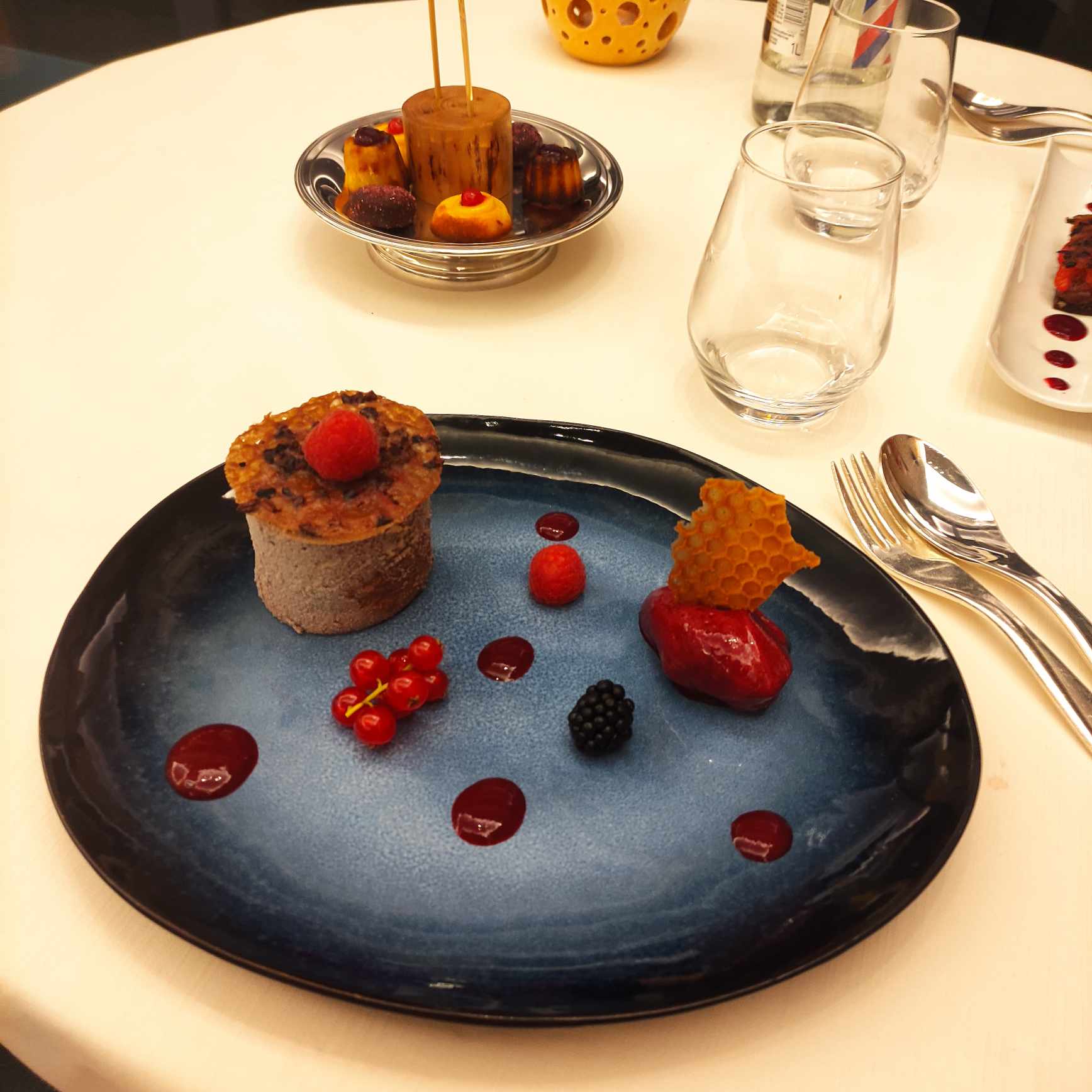 Très belle découverte culinaire... Des saveurs équilibrées, tout en finesse. Peut-être un petit bémol concernant le carré de porc, qui sans la délicieuse sauce qui l'accompagnait, aurait été un peu fade....mais c'est just pour chipoter. Autrement, la prochaine fois, je ferais très attention de ne pas craquer pour toutes ces délicieuses petites choses, proposées entre chaque plat, qui m'ont empêché de savourer pleinement le dessert qui était parfait. Merci pour ce beau moment.