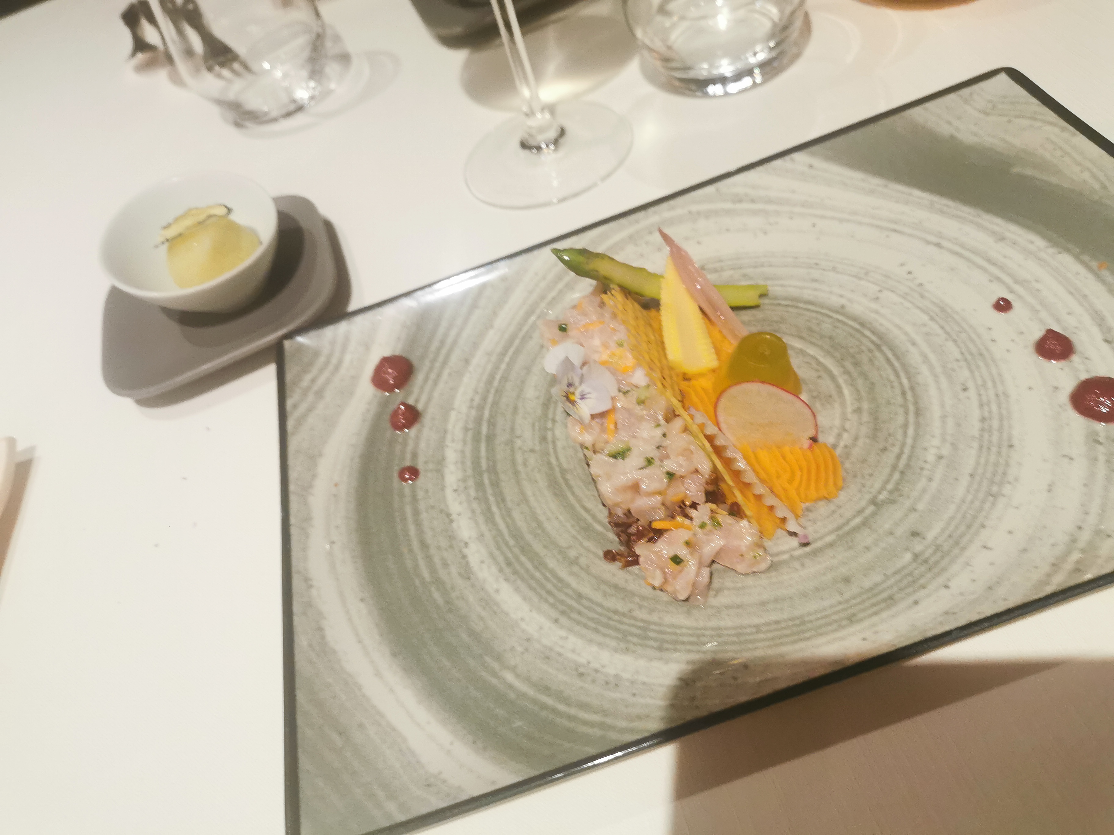 Excellent moment passé dans ce restaurant. Tout était parfait , l'accueil très agréable, le service parfais , très professionnel avec un contact très agréable et courtois . Le repas plein de couleurs et de saveurs . Des surprises à la dégustation avec une mousse qui disparaît immédiatement en bouche mais qui laisse une belle saveur et des gelés avec des saveurs très originales et surprenantes . Le petit plus , une carte de vin impressionnante avec des tarifs pour tous les budgets ( les premiers prix sont au alentour de 20 euro la bouteille , et il y a un grand choix ) nous reviendrons avec plaisir