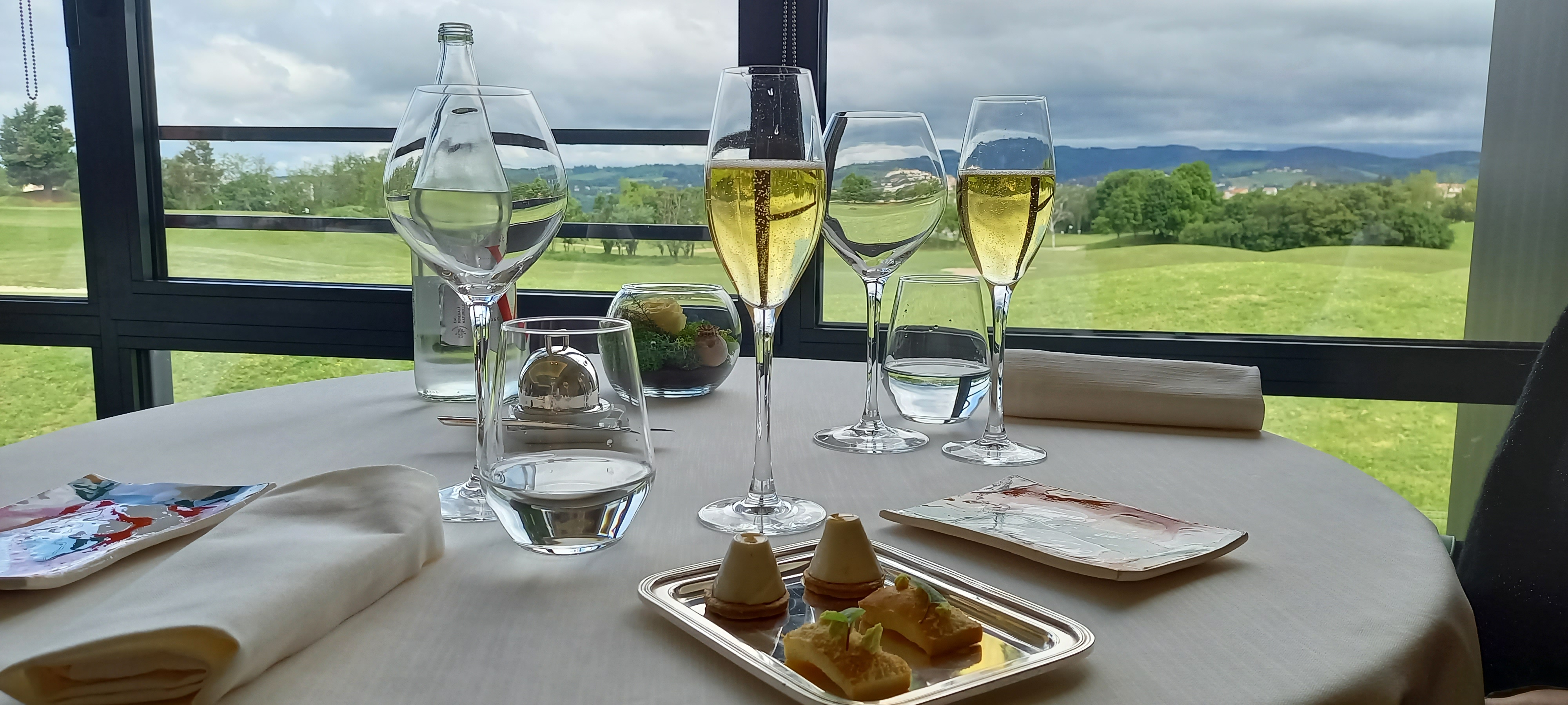 Avons réservé au restaurant la table des lys sur les hauteurs du golf de de Saint-Étienne,tout d’abord un excellent accueil téléphonique avec beaucoup d’amabilité . Un chaleureux accueil nous a été réservé lors de notre arrivée au restaurant. Plusieurs petits Salon,et dans tous les cas toujours une très belle vue sur le golf et la campagne environnante . On nous a accompagné à la table,et là tout commence ! Présentation de plusieurs sortes, de Petit pain fait maison . Choix du menu avec le maître d’hôtel !! Allons-y, c’est parti pour un festival de petites mises en bouche très gourmande . Dans notre menu . Le HOMARD court-bouillon vinaigrette fruit de la passion . Le turbo en croûte de sel , accompagné d’une délicate & fine garniture beurre d’agrumes . Le surprenant granité de sorbet au romarin. Et la le festival pour le dernier plat !! bœuf de salers escalope de foie gras poêlé,croustillant de morilles , et je ne vous parle pas de la divine sauce framboise oui qui sublimer se plat . Grandiose chariot de fromages de région pour un large choix . ( rare ). Et pour finir L’´avalanche de petits desserts plus que gourmand . Tout était délicieux, une cuisine pleine de surprises, généreuse, très bien maîtriser & exécuté par le chef et son équipe . Service, efficace discret où chaque plat est présenté . Bravo à tous, merci pour cet excellent moment de plaisir gustatif que vous nous avez offert . Il est important de souligner que le chef salue ses clients à la fin de la soirée . Toute fois je trouve dommage que cette établissement ne soit pas recommencer (.GR.) Il mériterait plus d’encouragement pour le travail accompli . Je vous recommande de vous rendre à cette excellent adresse .