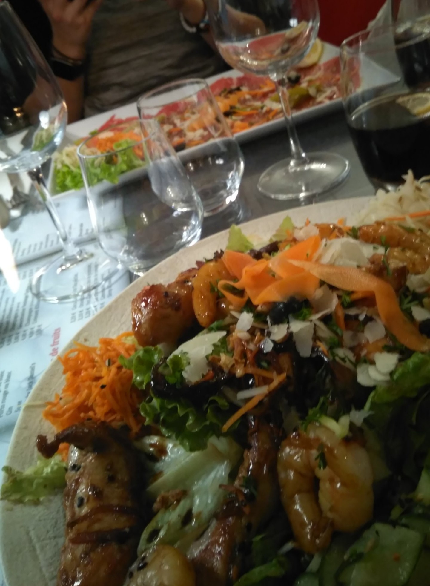 Restaurant très bruyant, très longue attente entre les plats, qualité des repas et service médiocre, une salade noyée dans la vinaigrette et un tiramisu pas du tout bon, peut de choix végétarien.