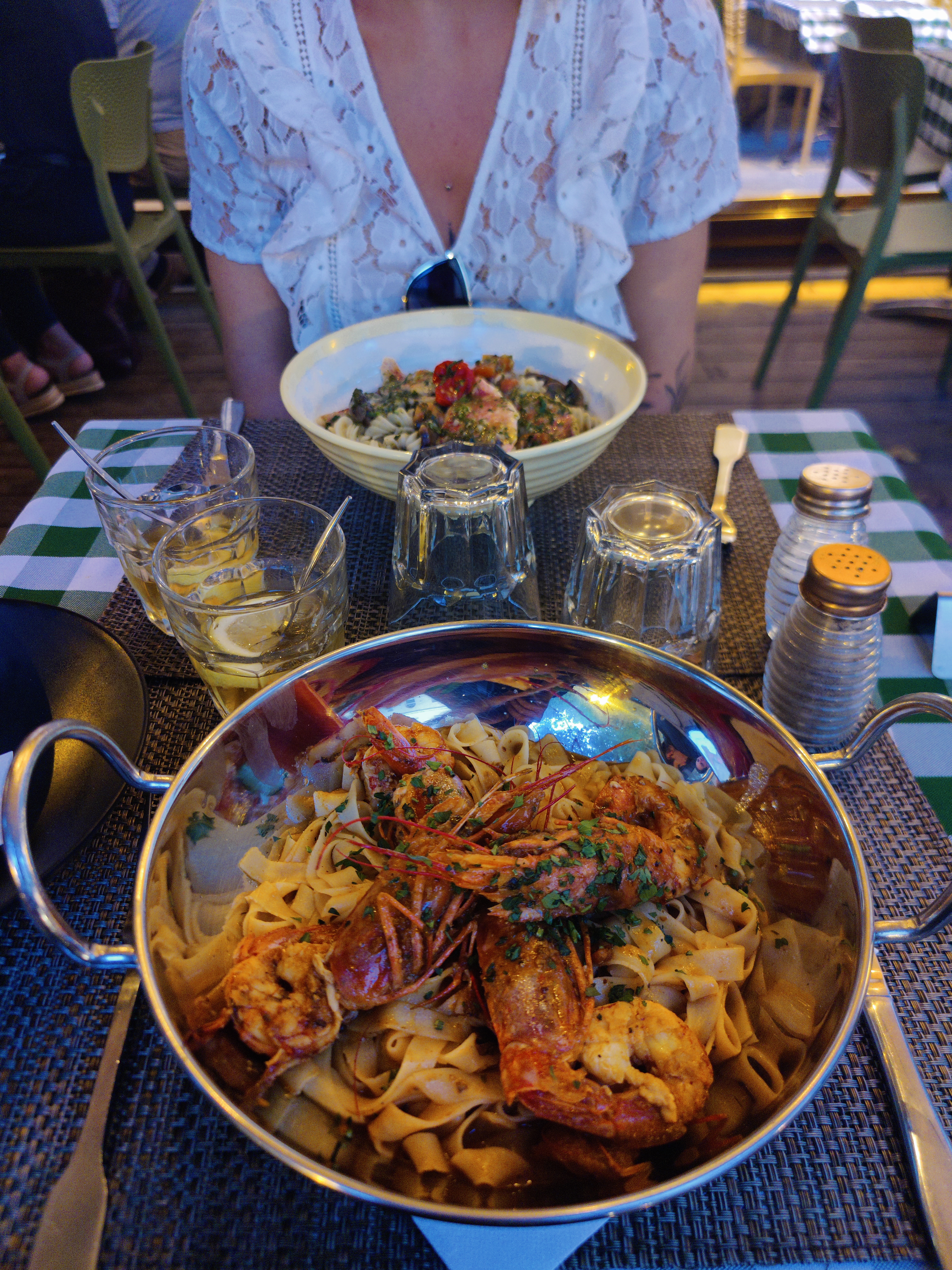 Terrasse plutôt calme, pâte fraîche, un peu trop cuite à mon goût