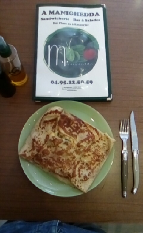 Abandonnez tout espoir, vous qui entrez. Pauvre salade composée 7 euros Crêpes salées au fromage et tomates 5.50 Bière 3 Tomate coulée sur une jambe libre Des crêpes que, si l'on veut, on digère en rentrant à Bastia à pied. Laisse tomber.
