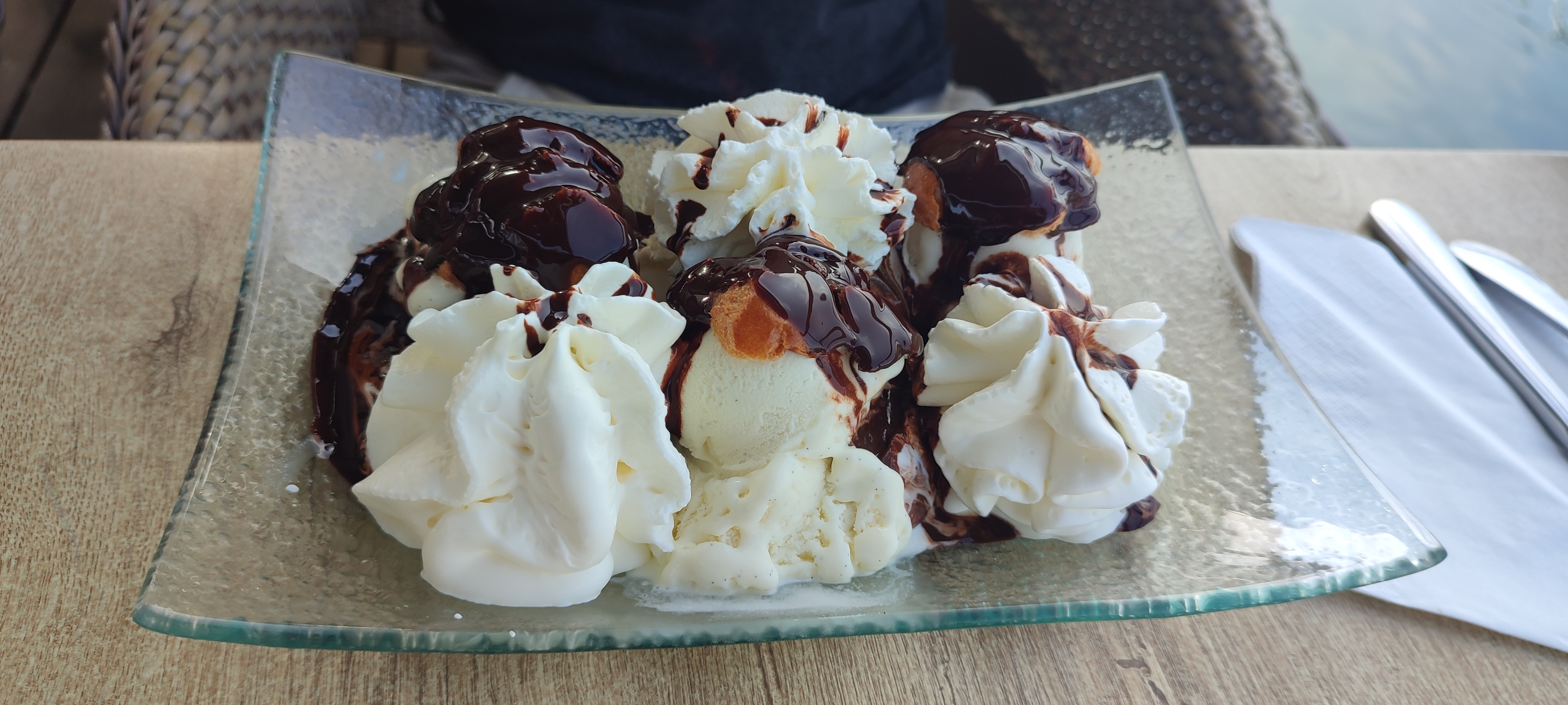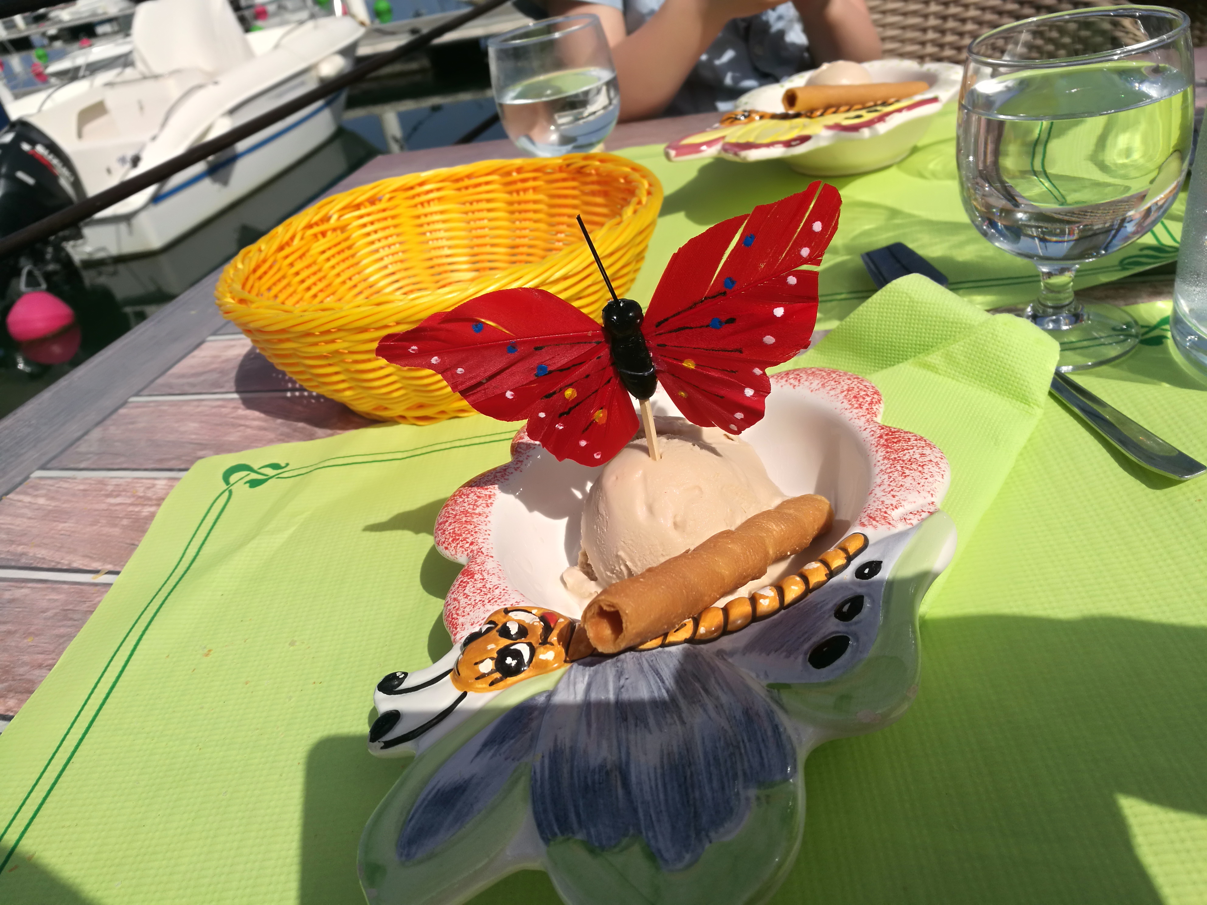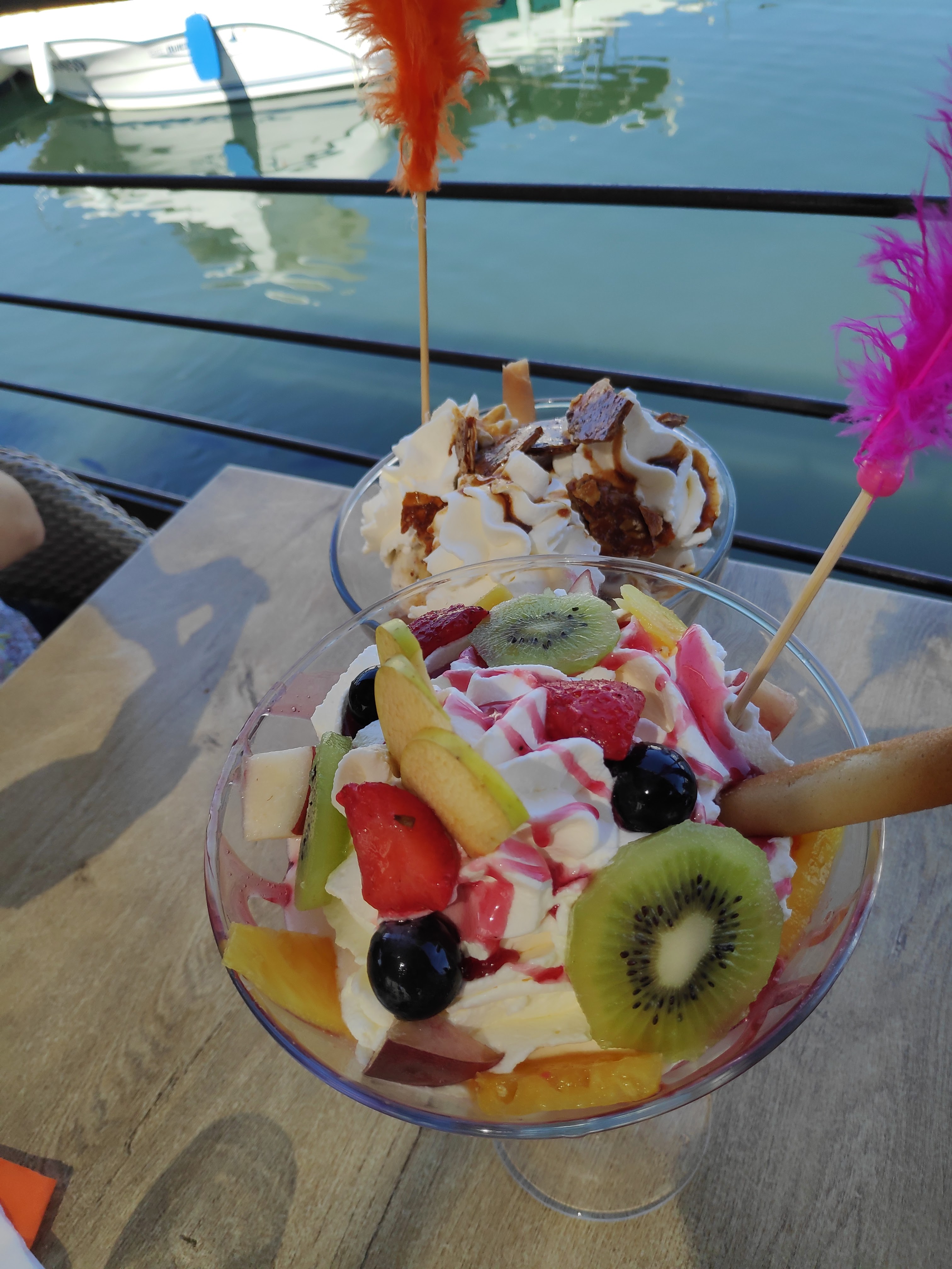 Magnifique glace sur une terrasse donnant sur le port. Et je vous assure pas des petites glaces....🍨🍧