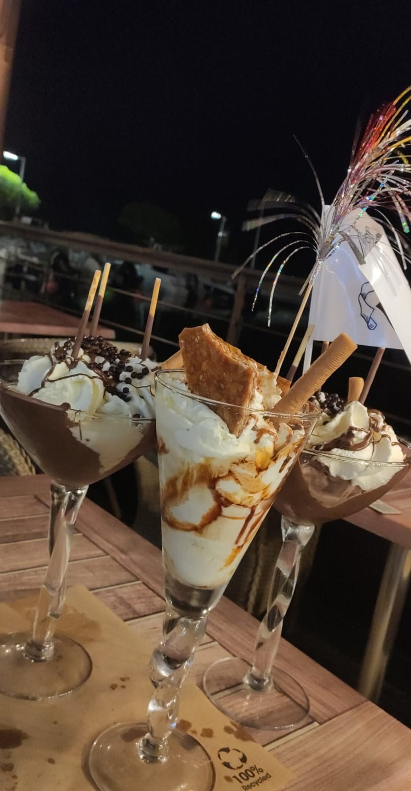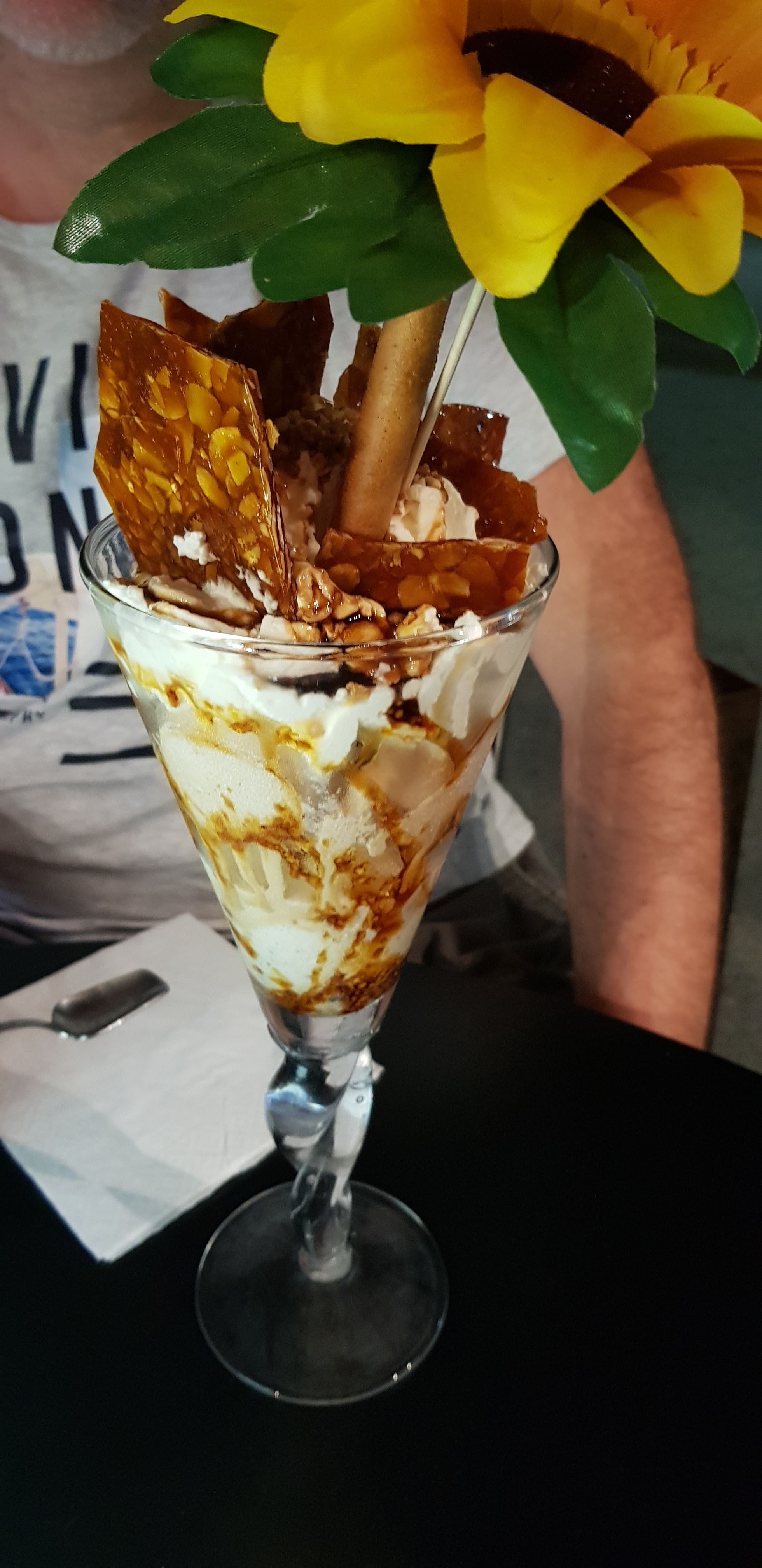 Pour notre part, 4 glaces mais la déception était unanime. Nous les avons trouvé sans goût. Plusieurs parfums ont été pris ananas, clémentine, praliné... Mais aucun n'a retenu un grand succès. La chantilly était bonne. Vue sur le port. Déception niveau qualité prix.