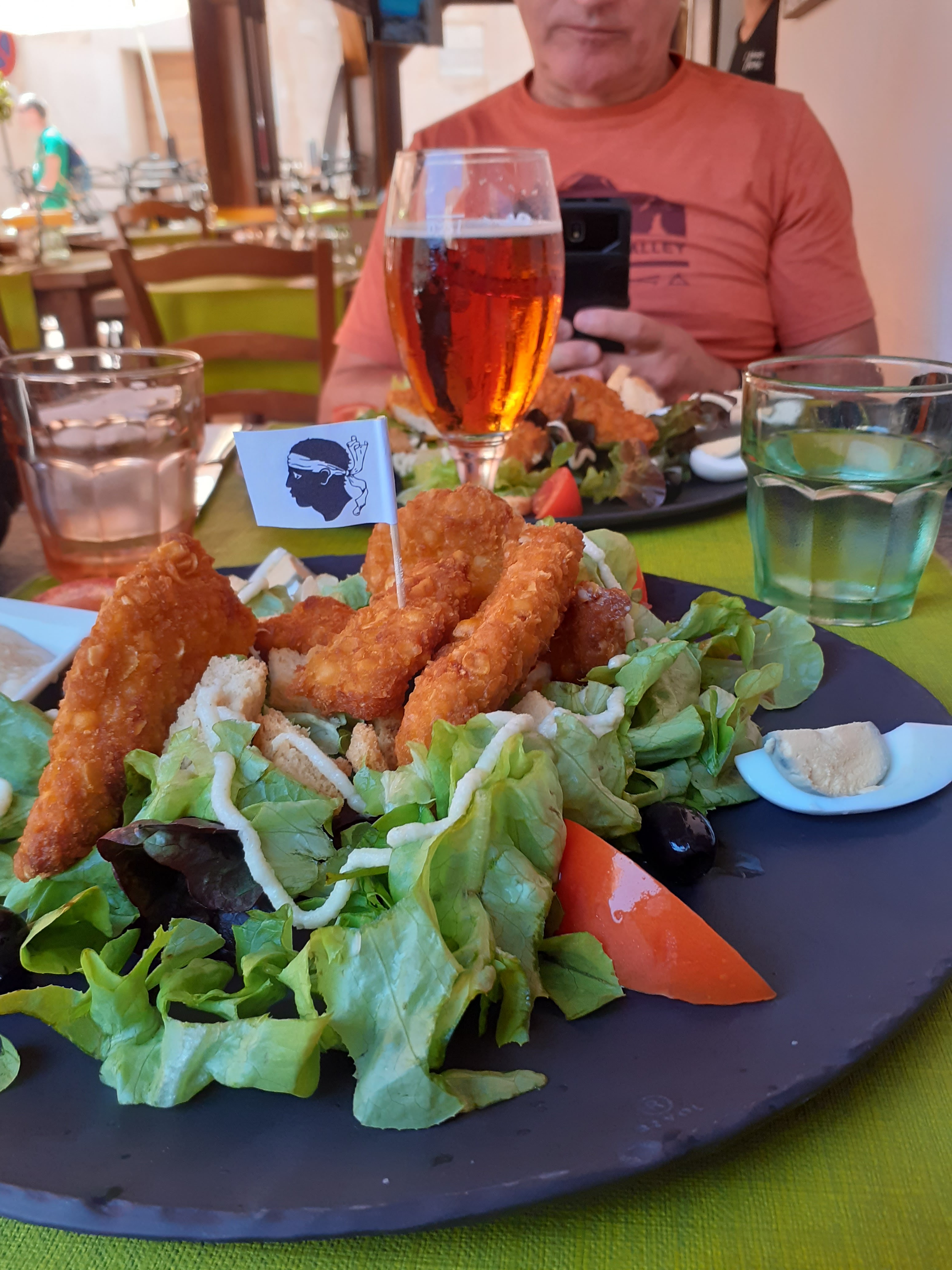 Bon petit restaurant nous avons mangé un crêpe sarrasin bien copieuse pas sec du tout .A refaire pendant nos vacances en Corse.L'accueil et le sourire de la serveuse font du bien pour passer une bonne soirée.