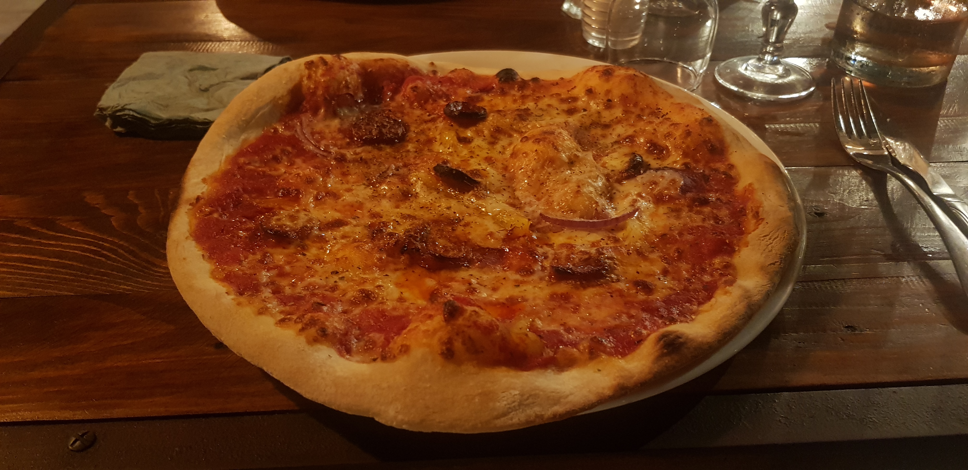 Lieu sympa.vraies pizzas fraîches dans four à pizzas. Burgers très bons,produits frais.