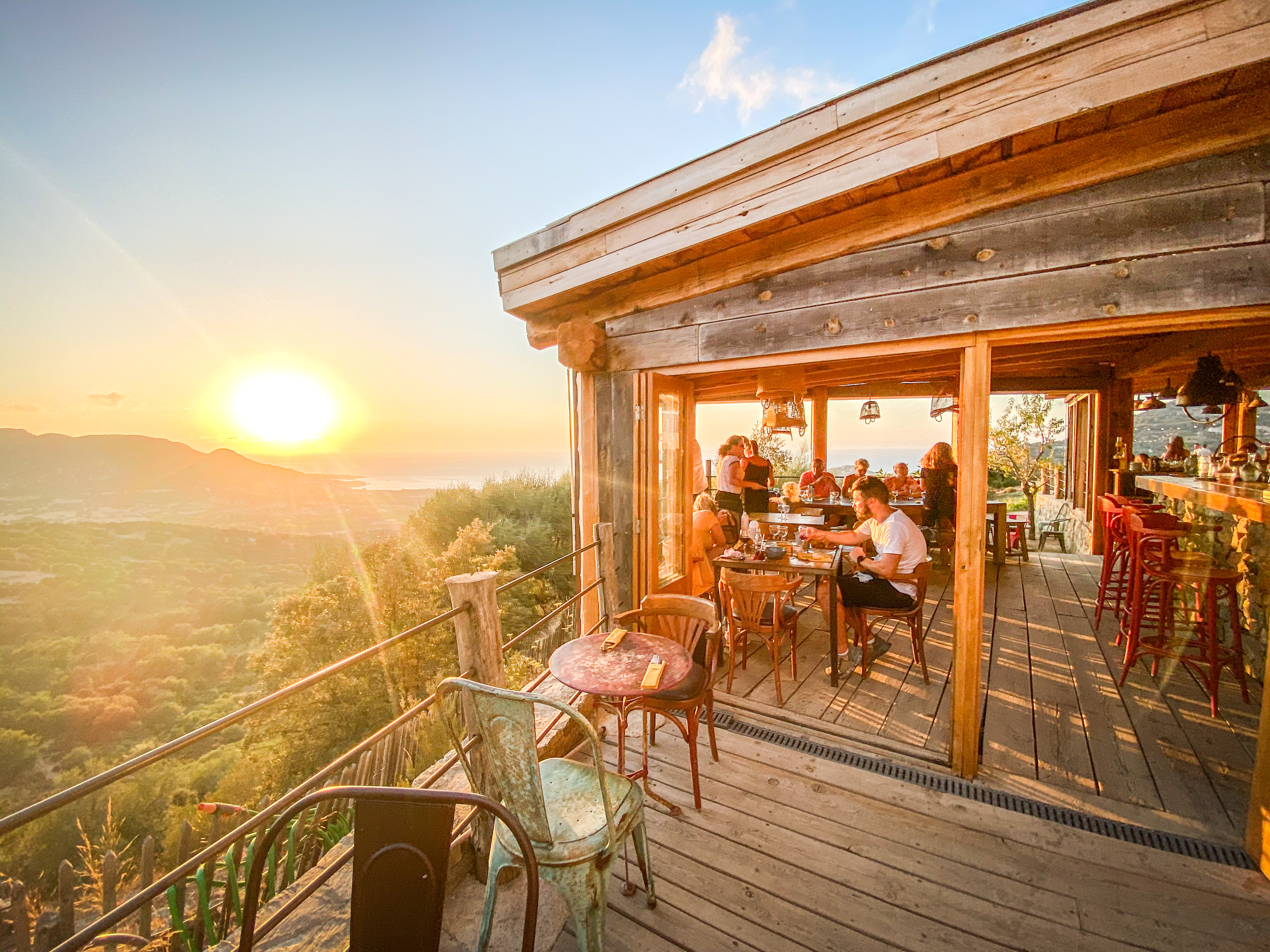 Vue imprenable sur le coucher de soleil sur la mer, plats typiques corses, tapas délicieux... Décor très sympa. Je recommande ! Le seul bémol, pr les plus difficiles : peu de choix de plats.