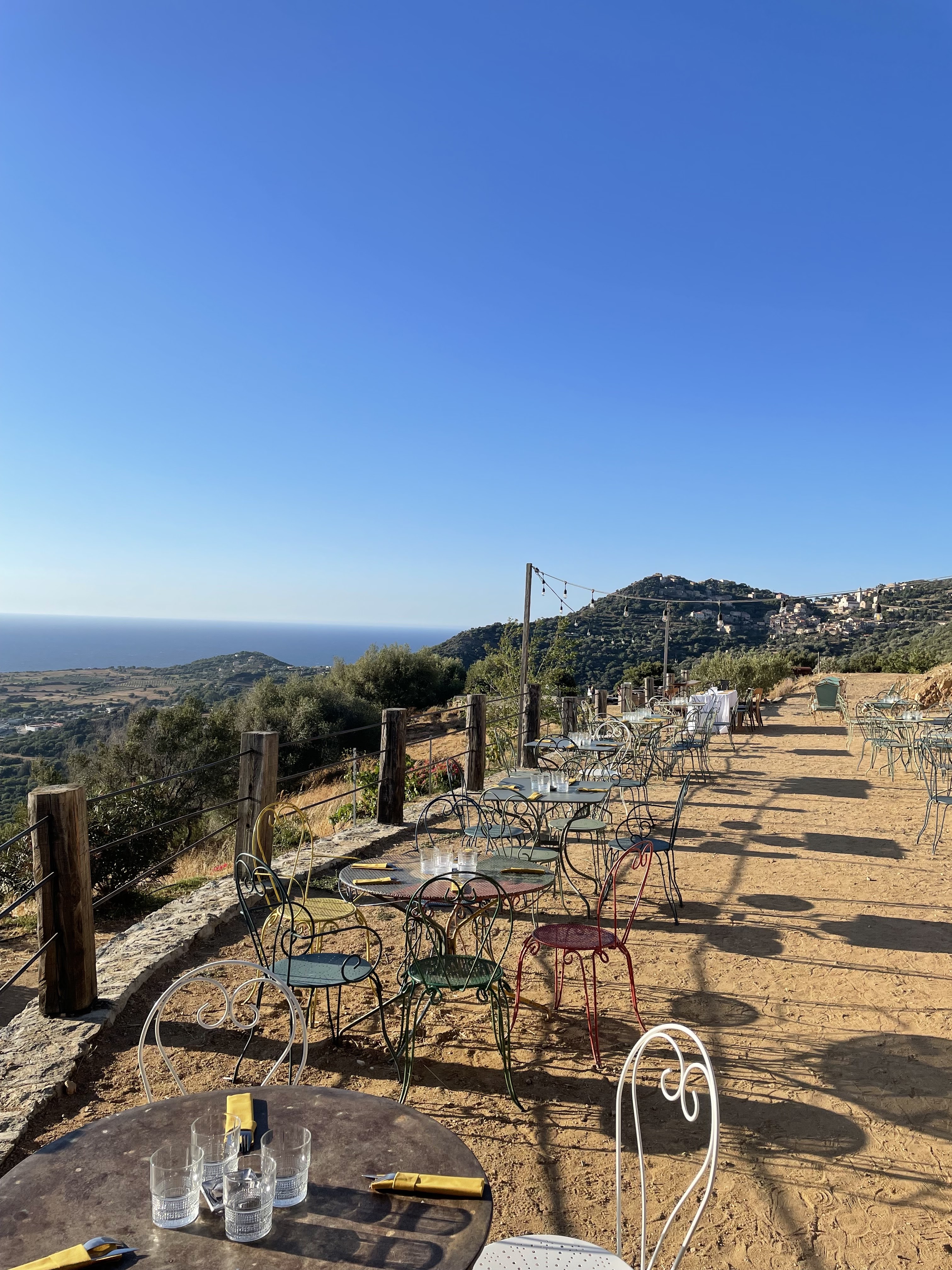 Excellent restaurant avec une ambiance chaleureuse et conviviale ! Une superbe vue avec la vallée en premier plan et la mer en second plan. Une cuisine typique corse, mention spéciale pour l'energia boisson à base de pomme, carotte et gingembre, un cocktail vraiment rafraîchissant ! Je conseille grandement !