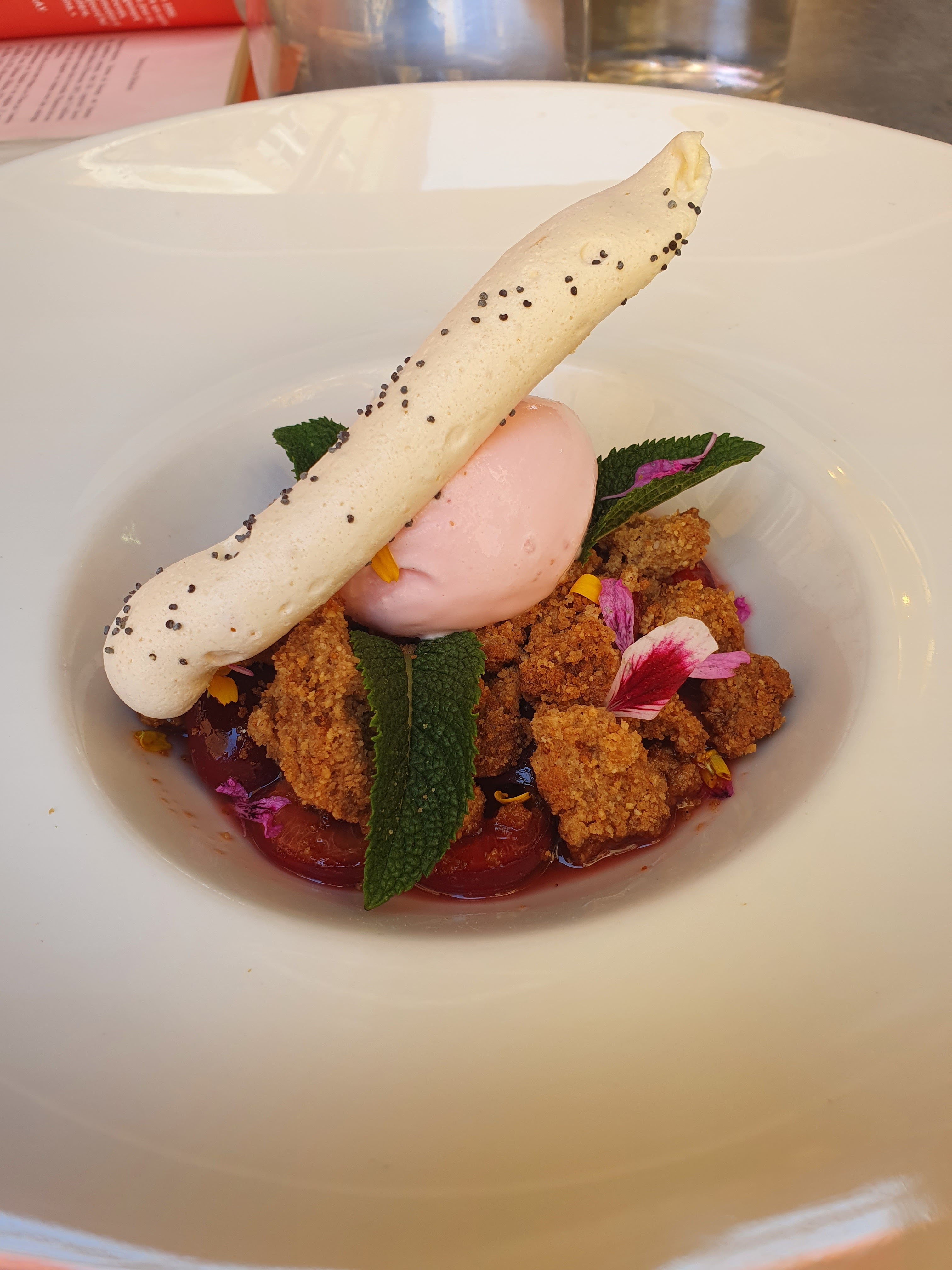 Un accueil et service impeccables , poulpe grillé excellent, mais les portions pourraient être plus généreuses , crumble de cerises a la glace au coquelicot original et délicieux.