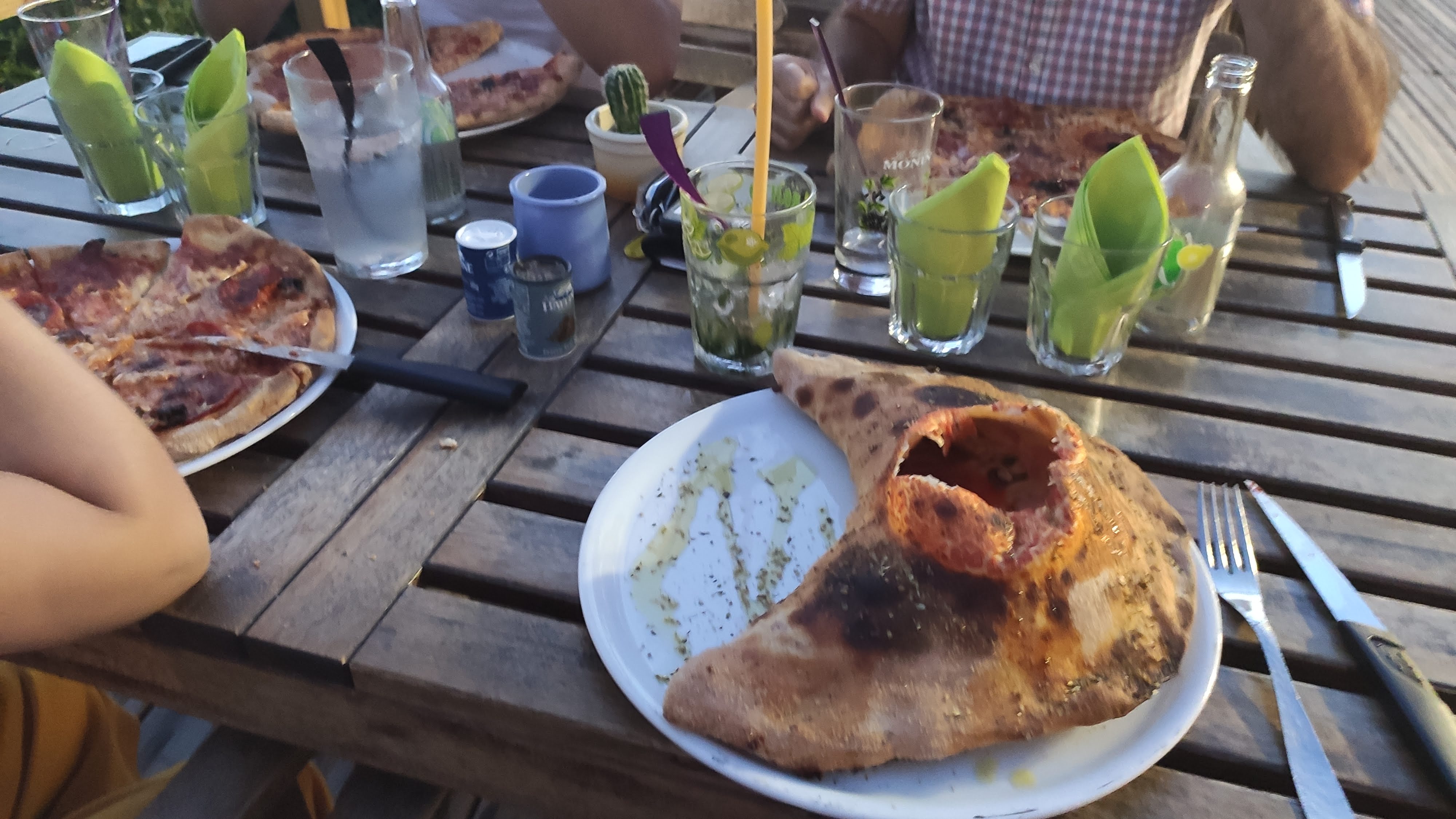 Pizzas très bonnes notamment leur pâte. Serveur(euse) très agréables. Et pour couronner le tout un cadre idyllique.