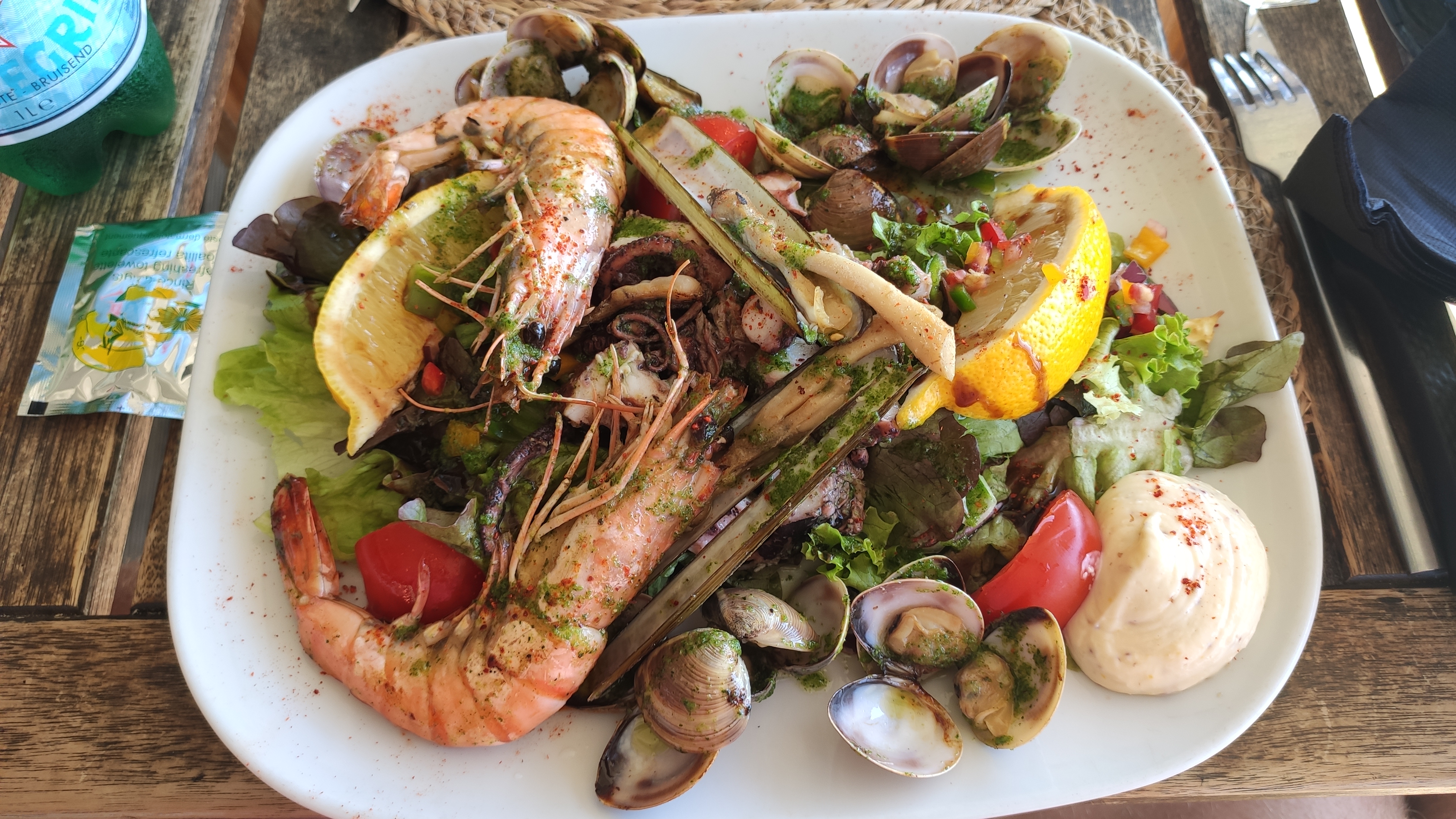 Pour faire simple, nous atterrissons dans cet établissement par hazard sur le coup de 14h30 sans se renseigner. Nous prenons deux salades dont une aux fruits de mer et une italienne. Rien à dire, produits frais respect du produit. Du coup en revenant de porto, 20h30, deuxième passage pour un plat chaud. Calamar à la plancha et lasagne boeuf canard. Encore une fois pas déçu du tout. Les desserts sont très bons aussi