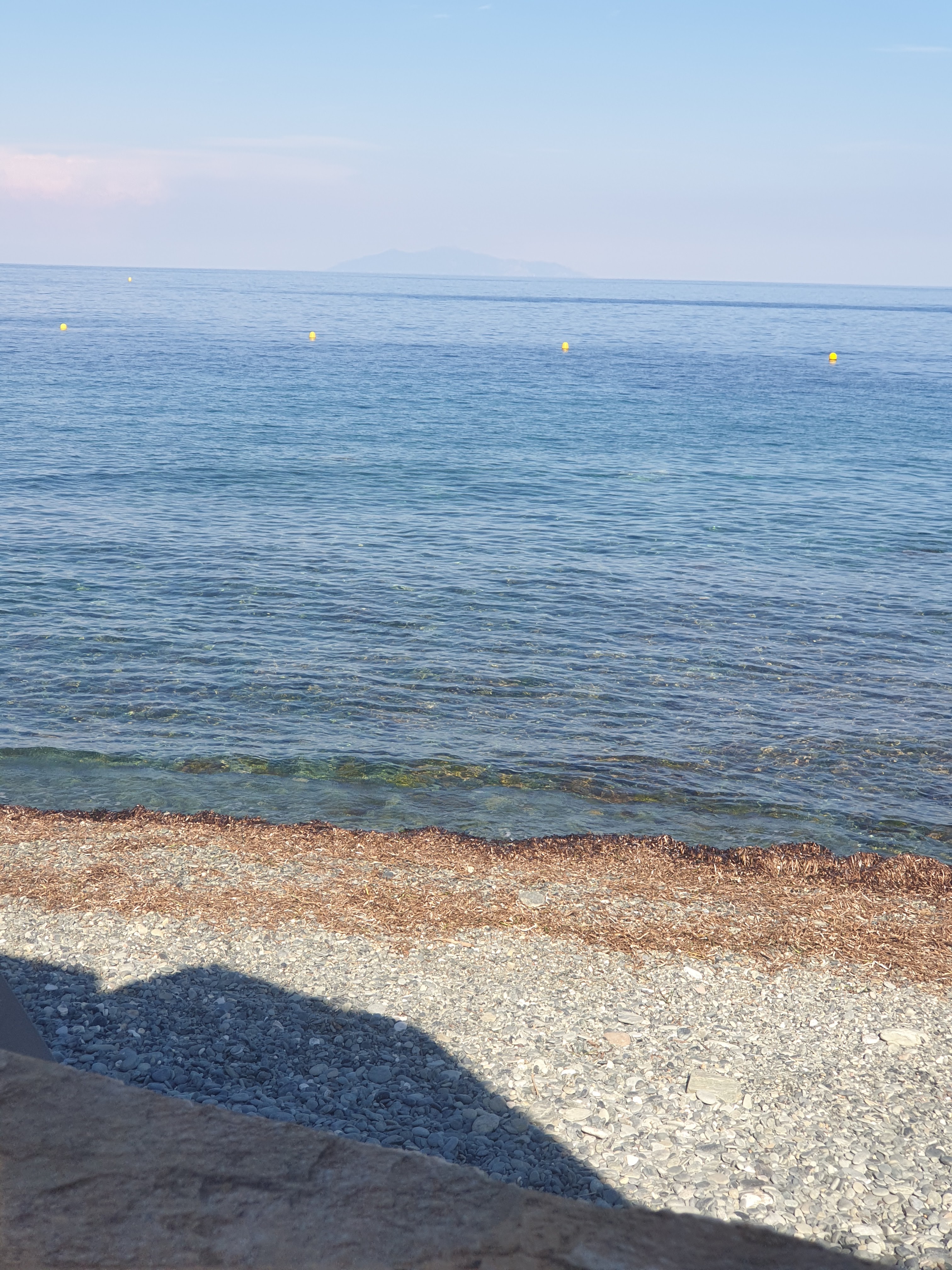 Bar/restaurant très sympa, nous nous y somme arrêter pour y boire un verre après la visite du village de Brando et c'était très agréable. Une superbe terrasse en bord de mer avec des canapés et des fauteuils, petite plage de galets en contrebas et une eau transparente. Nous avons payer 10€ pour une bière, une glace et coca ce qui est tout à fait correct. Je recommande.